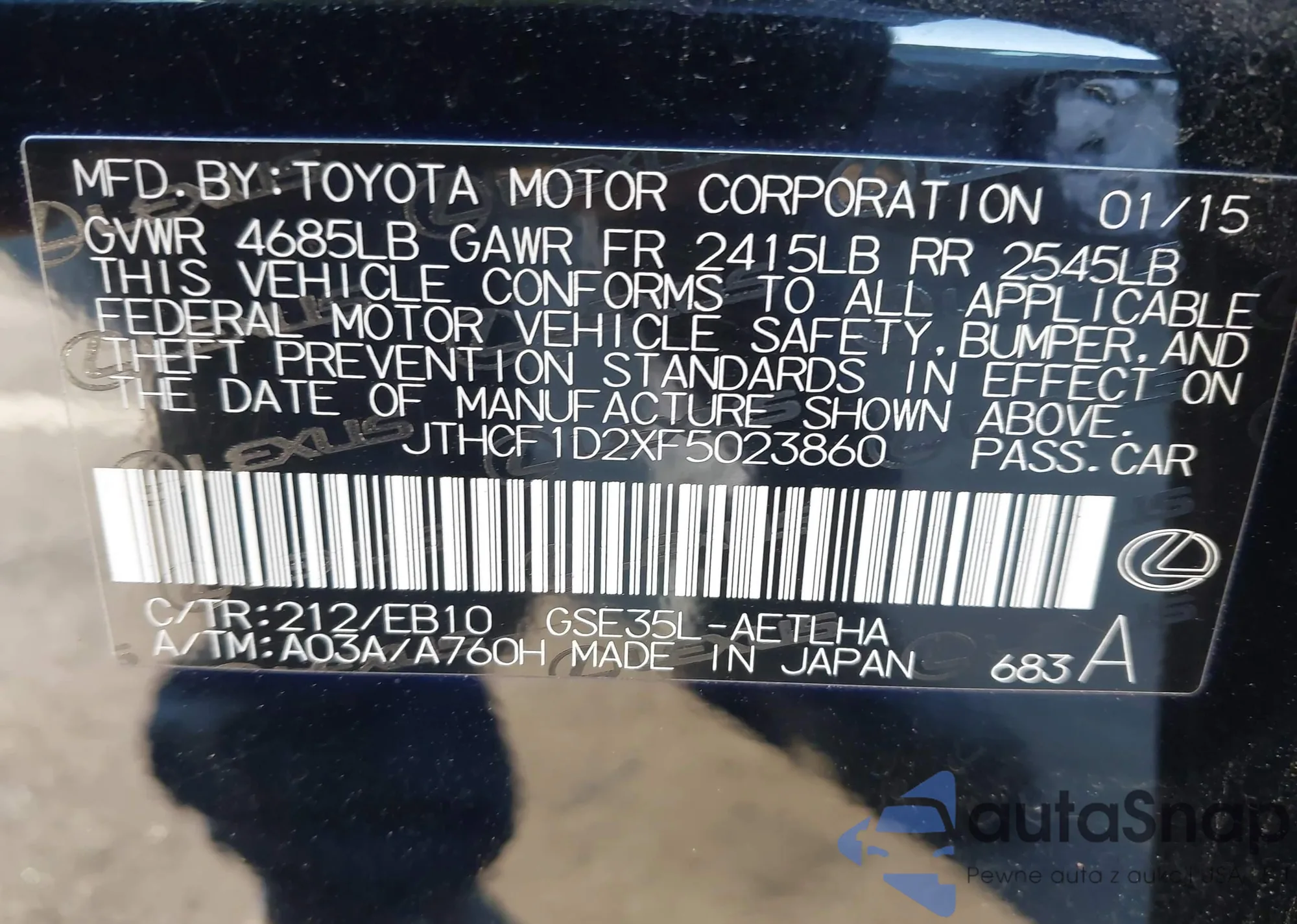 • VIN JTHCF1D2XF5023860
