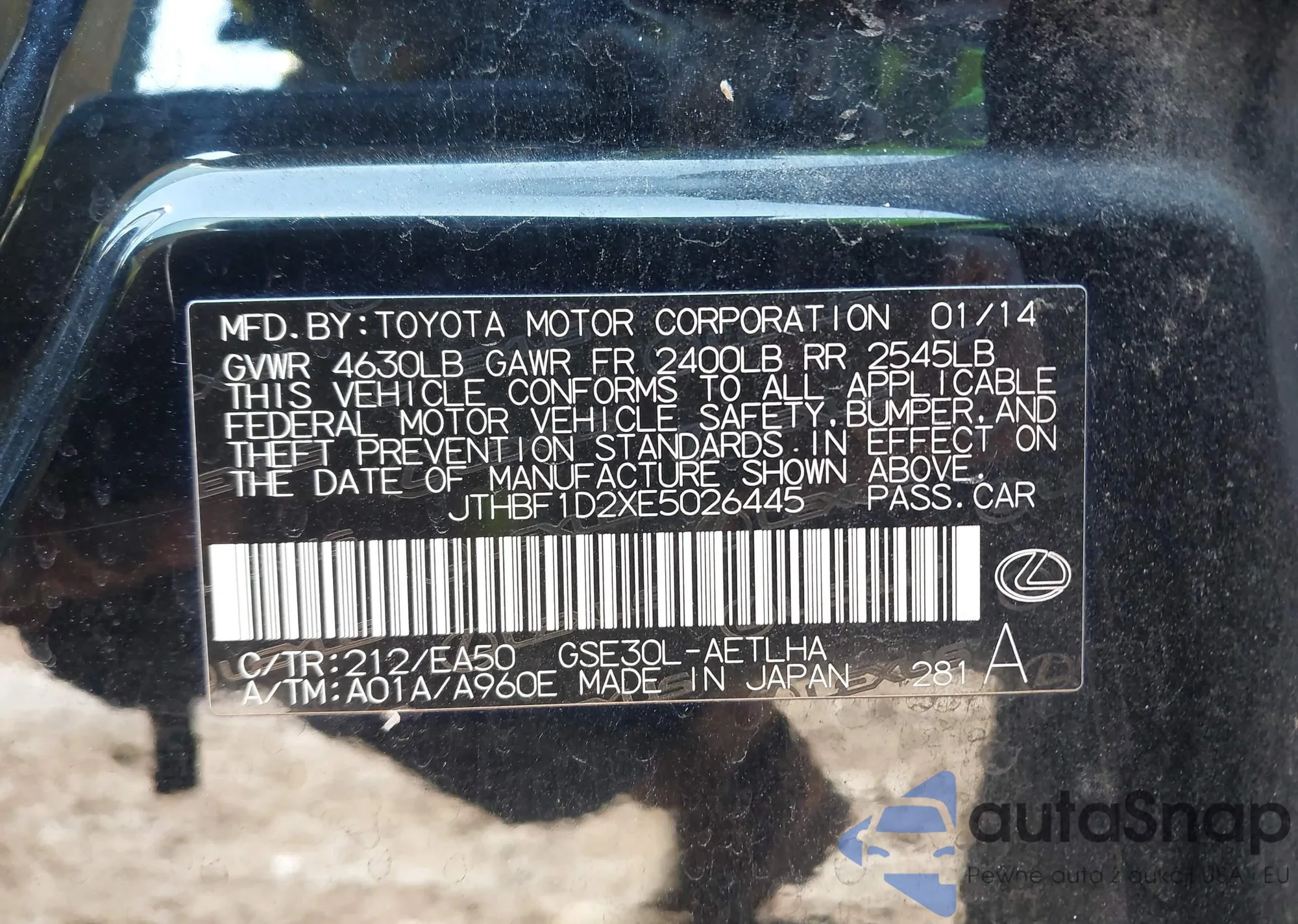 LOT: 44236732 VIN: JTHBF1D20E5031847