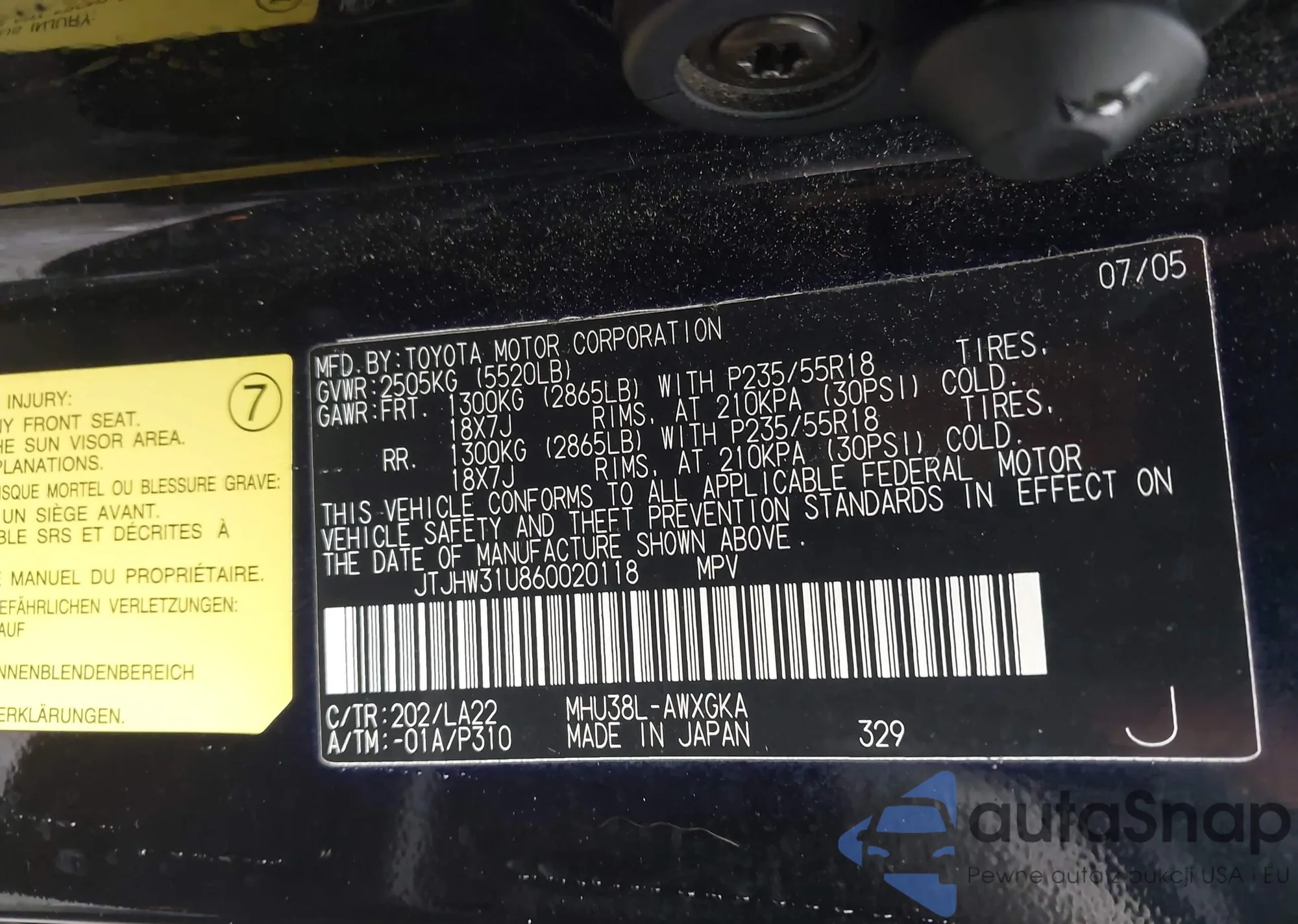 LOT: 44203611 VIN: JTJHW31U860020118