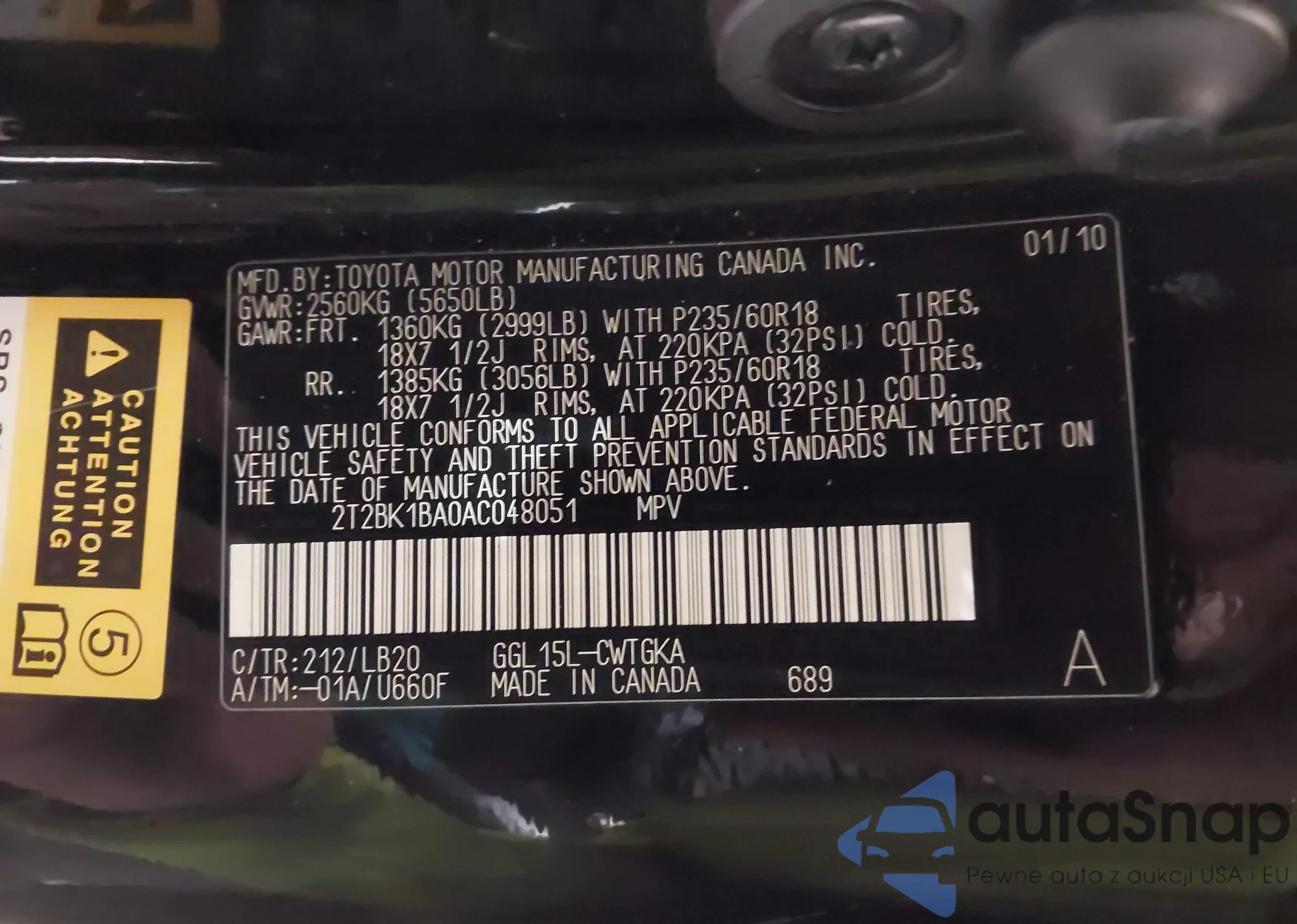 LOT: 44165002 VIN: JTJBC1BA7A2023855