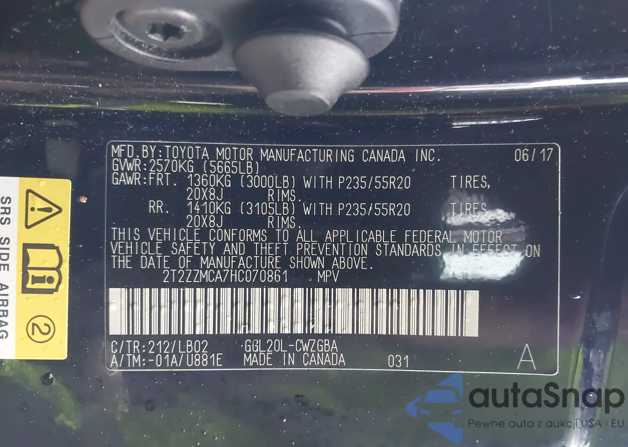 • VIN 2T2ZZMCA7HC070861