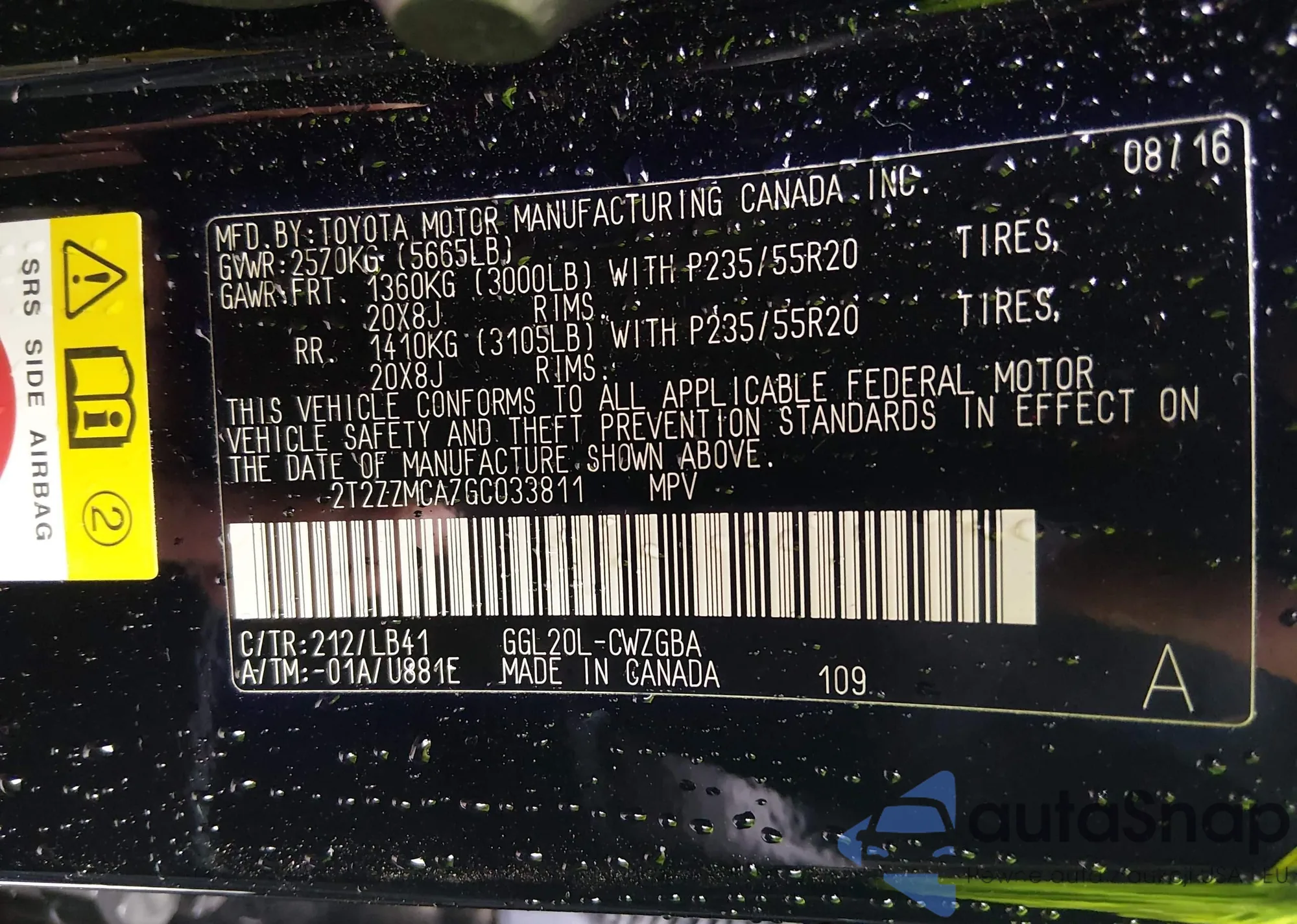 • VIN 2T2ZZMCA7GC033811
