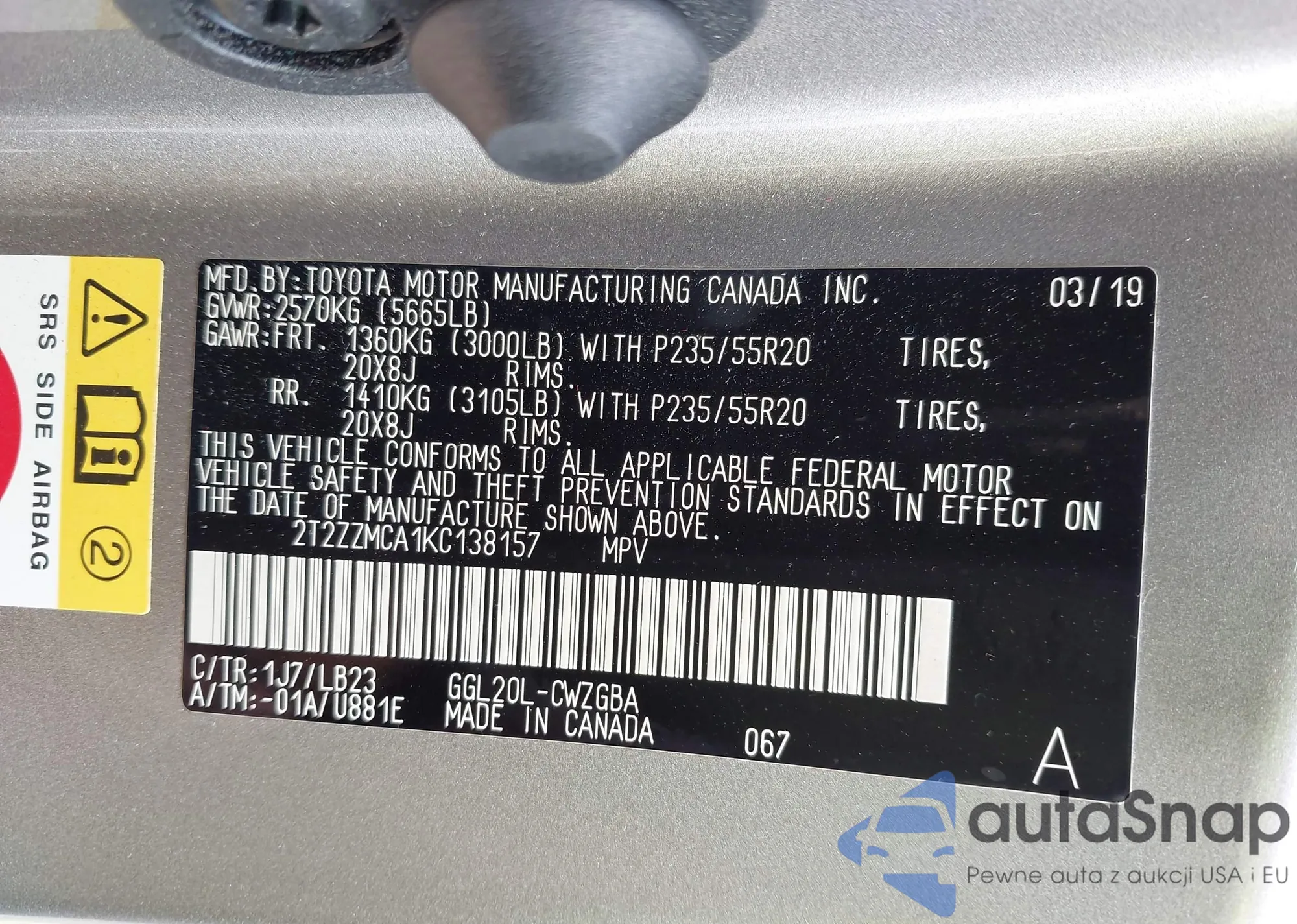 • VIN 2T2ZZMCA1KC138157