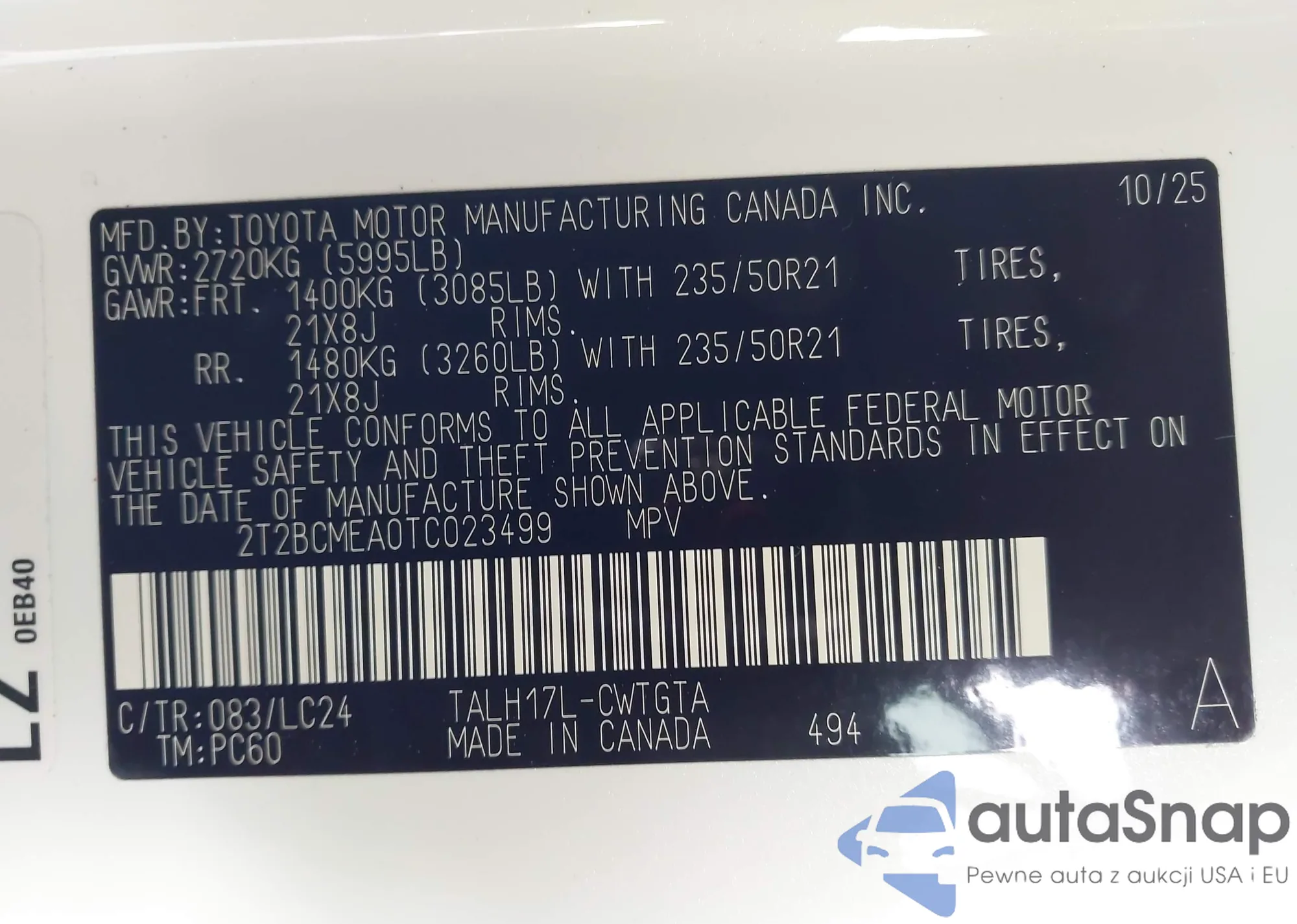 • VIN 2T2BCMEA0TC023499