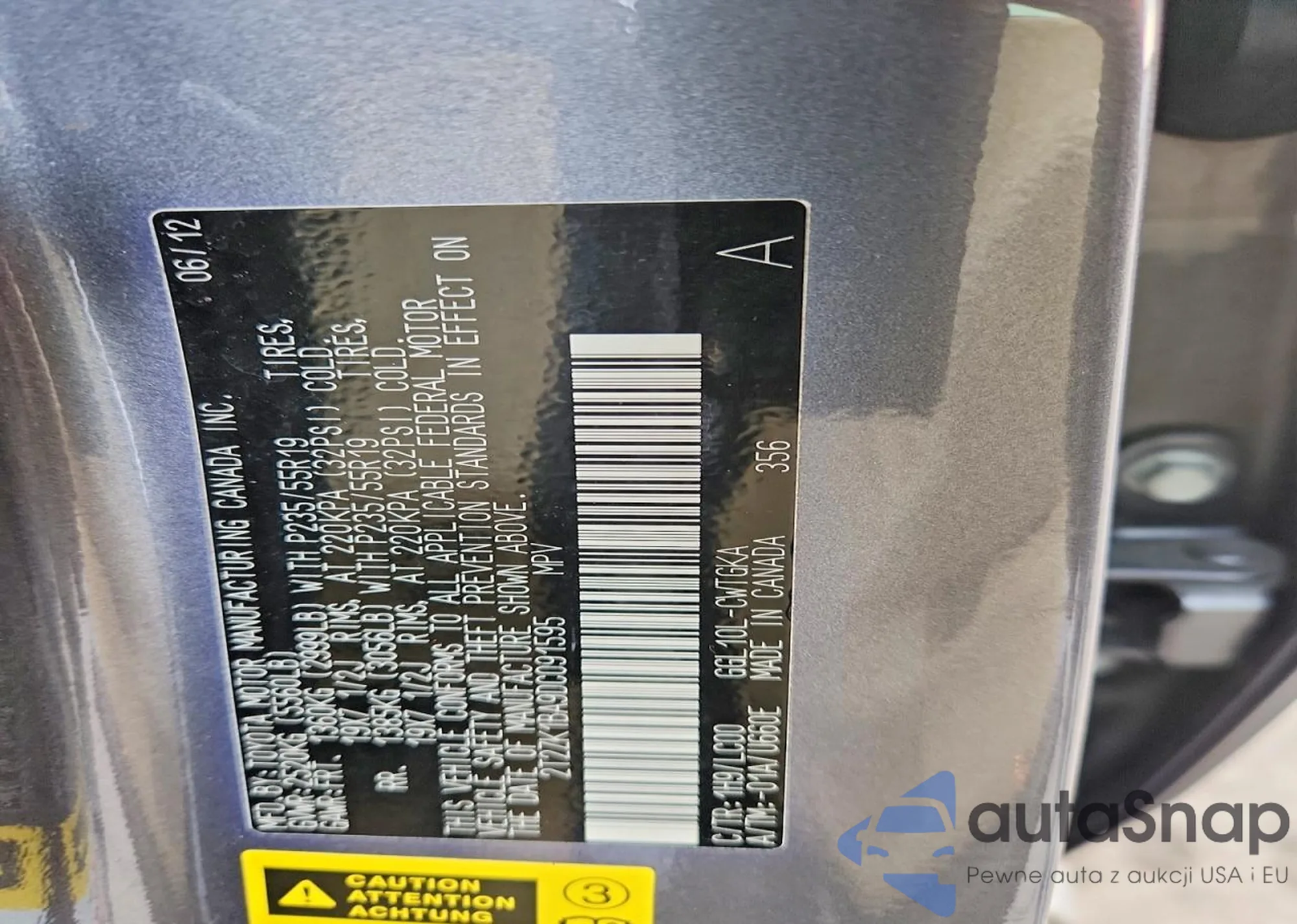 • VIN 2T2ZK1BA9DC091595