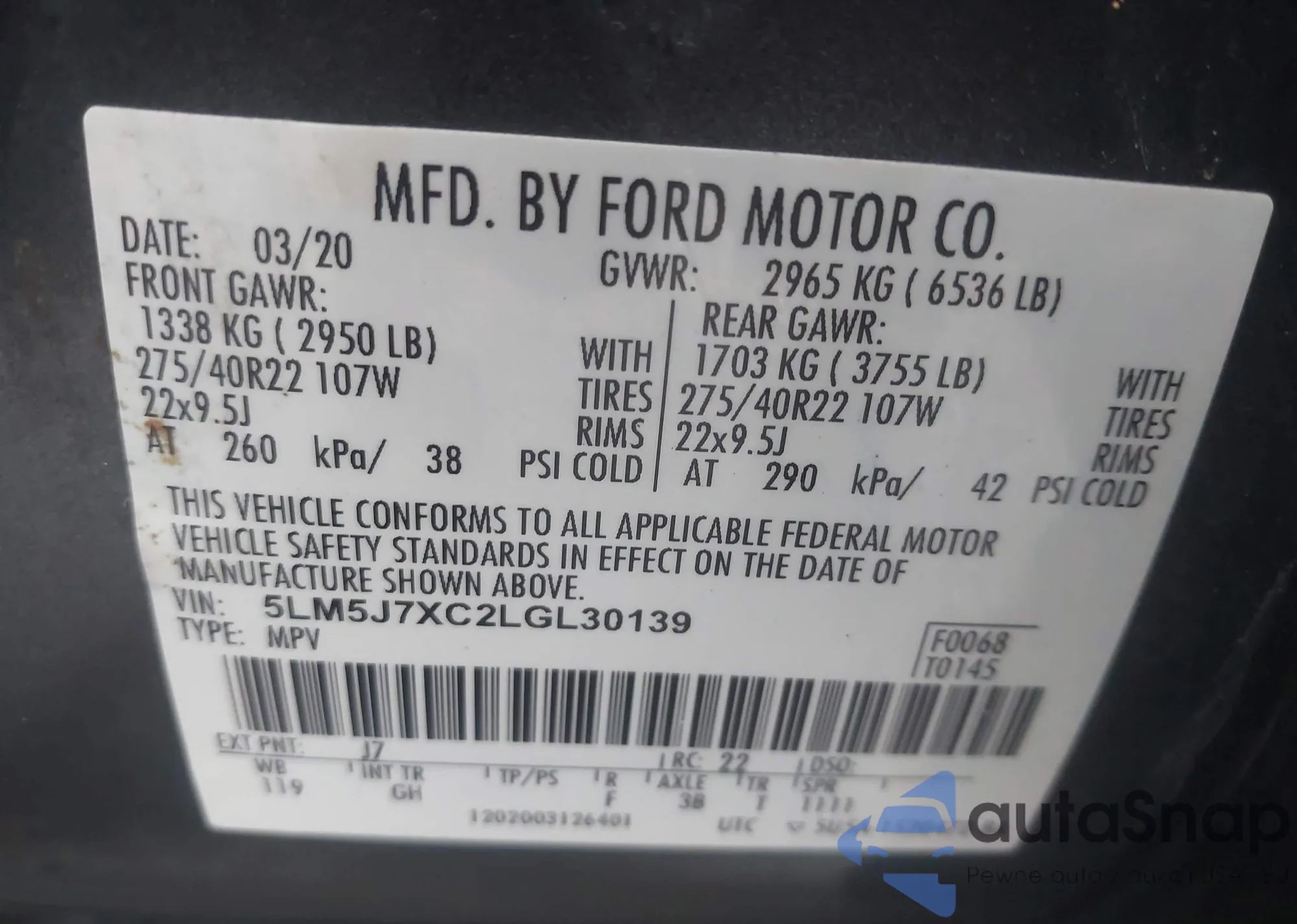 • VIN 5LM5J9XC7LGL29273