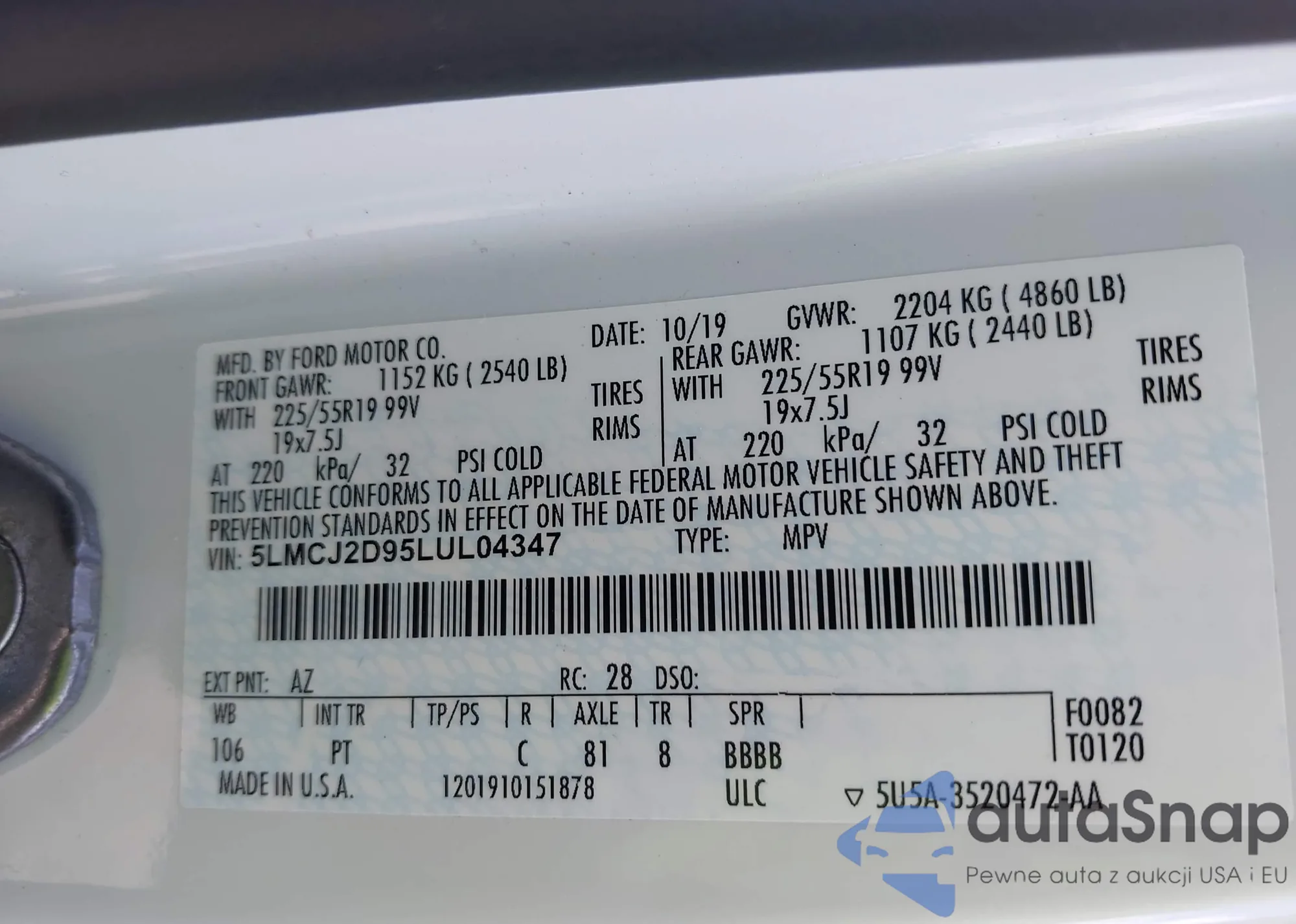 • VIN 5LMCJ2D95LUL04347