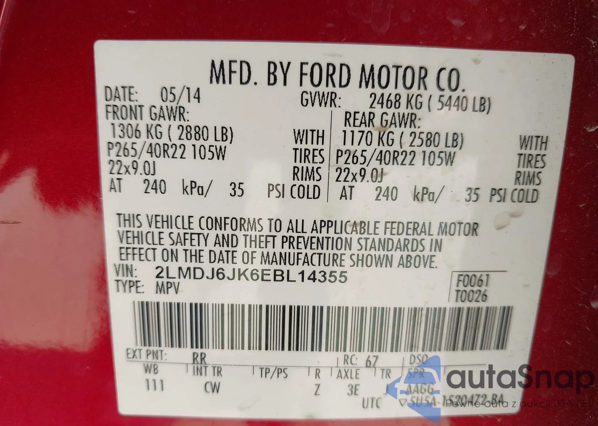 • VIN 2LMDJ6JK6EBL14355