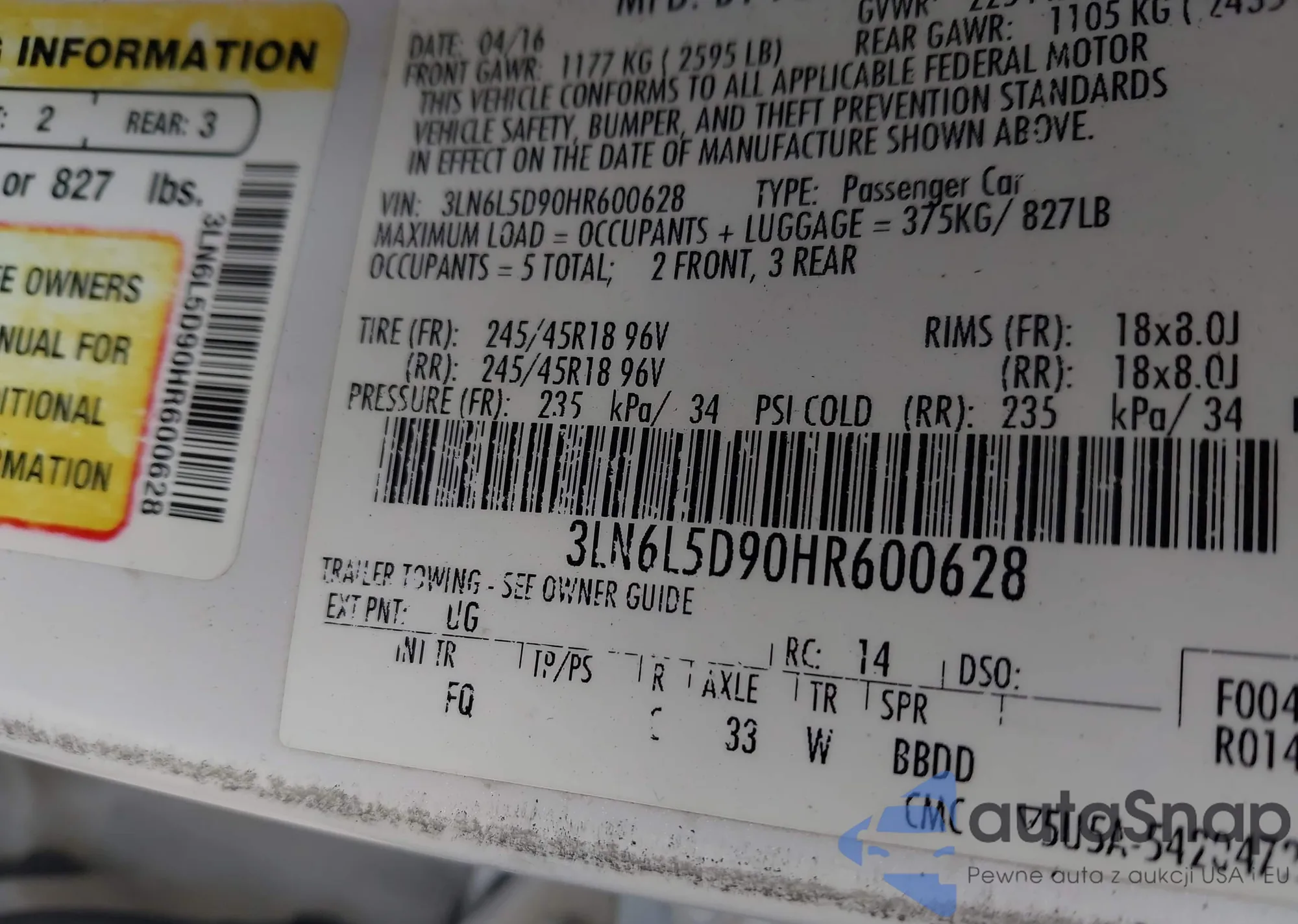 LOT: 43089344 VIN: 3LN6L5A92HR665002