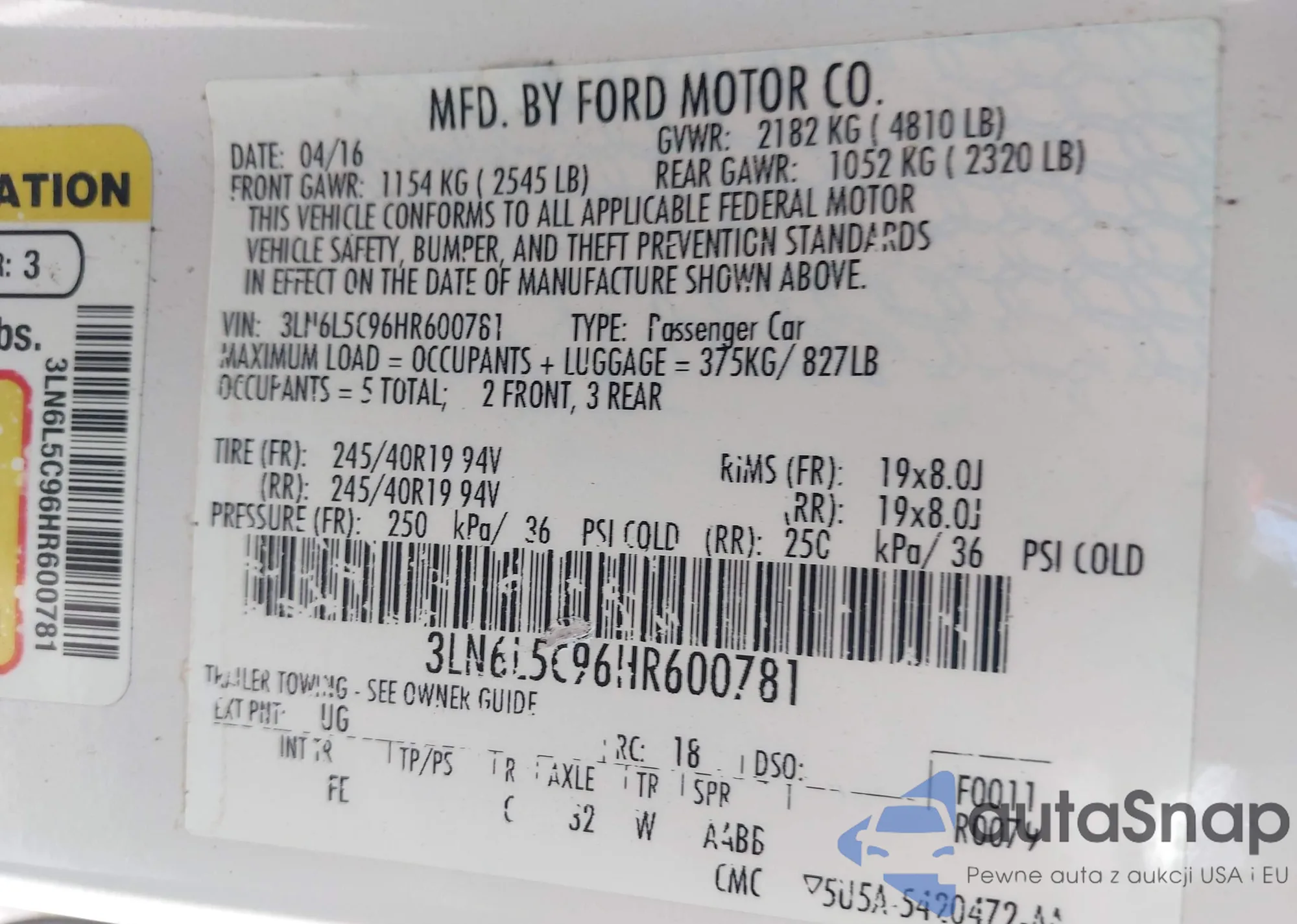 LOT: 42568314 VIN: 3LN6L5C96HR600781