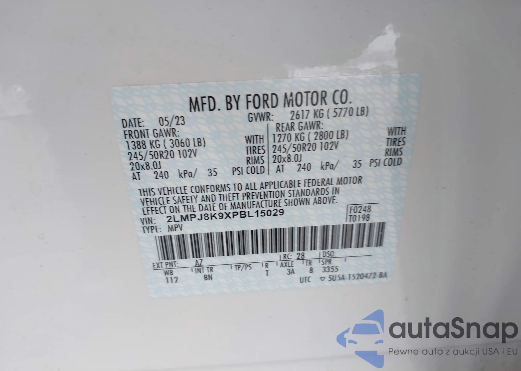 • VIN 2LMPJ8K9XPBL15029