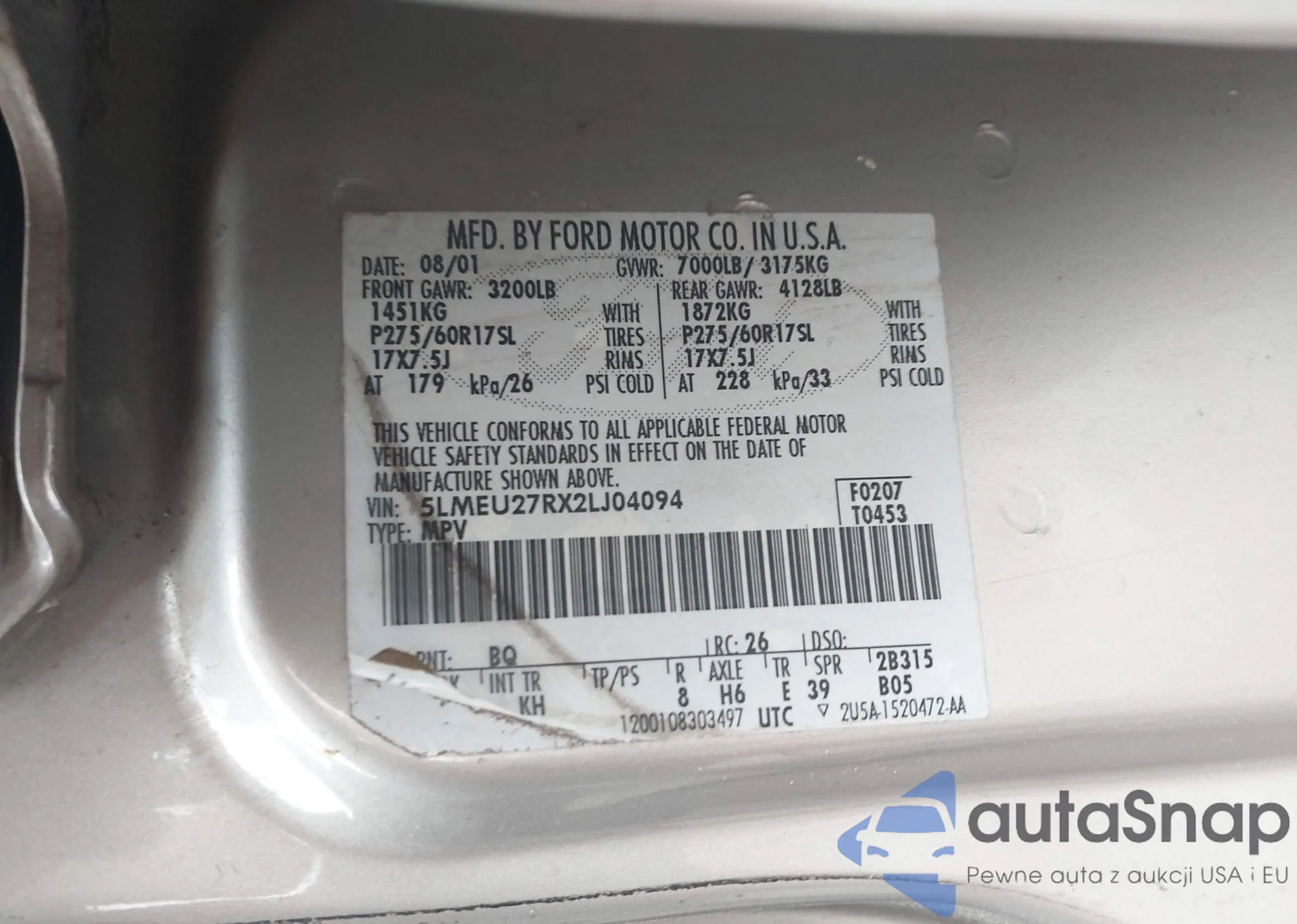 • VIN 5LMEU27RX2LJ04094