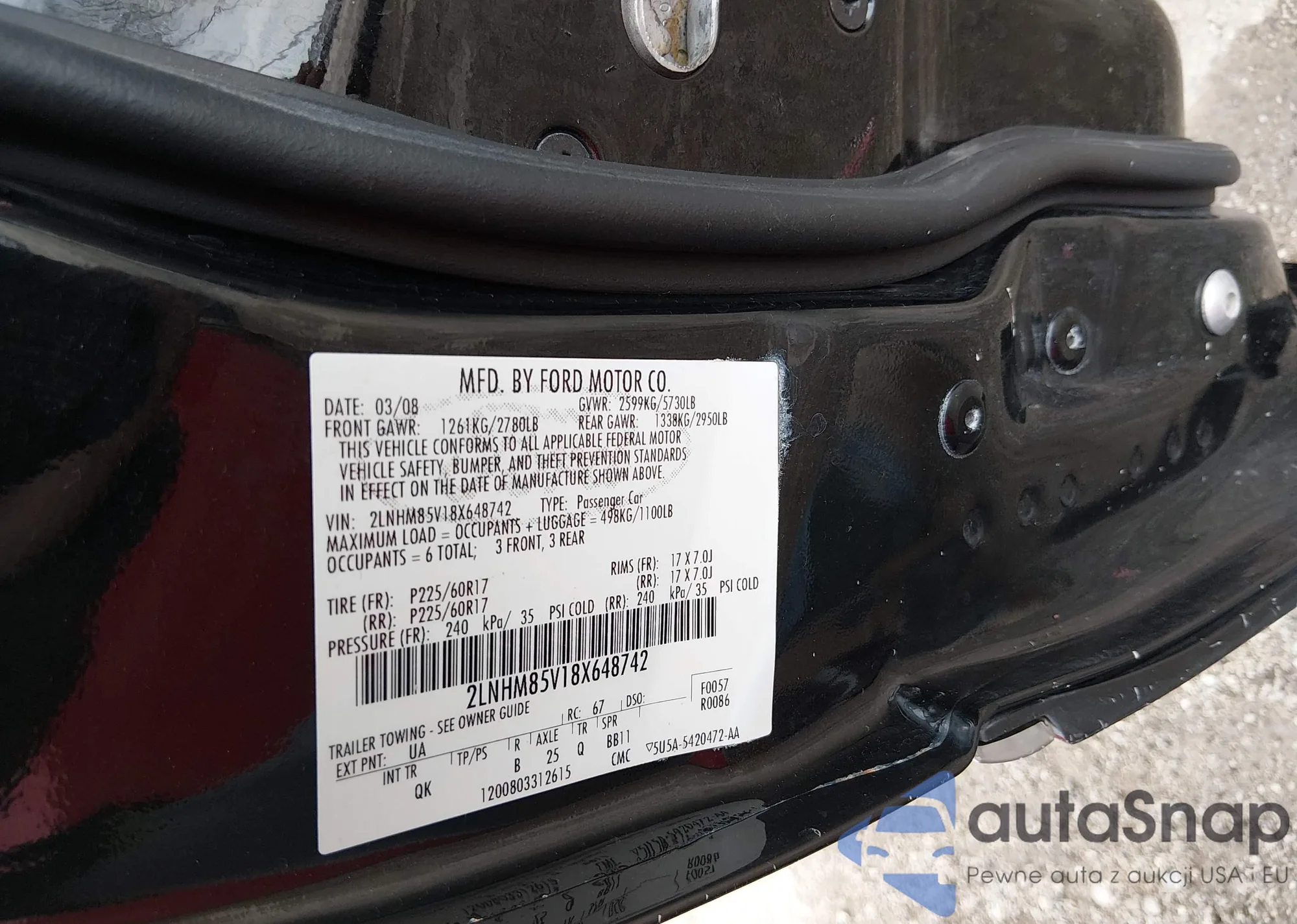 LOT: 44638253 VIN: 2LNHM85V18X648742