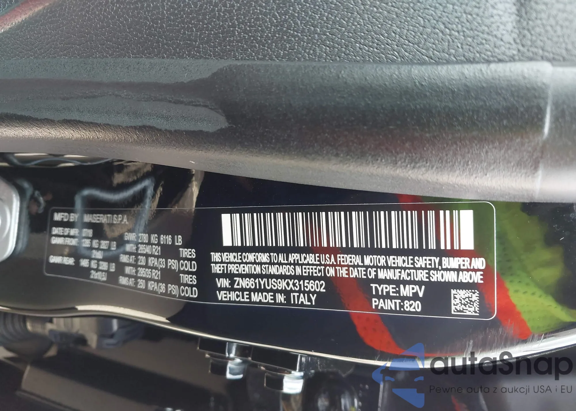 LOT: 44597633 VIN: ZN661YUS9KX315602