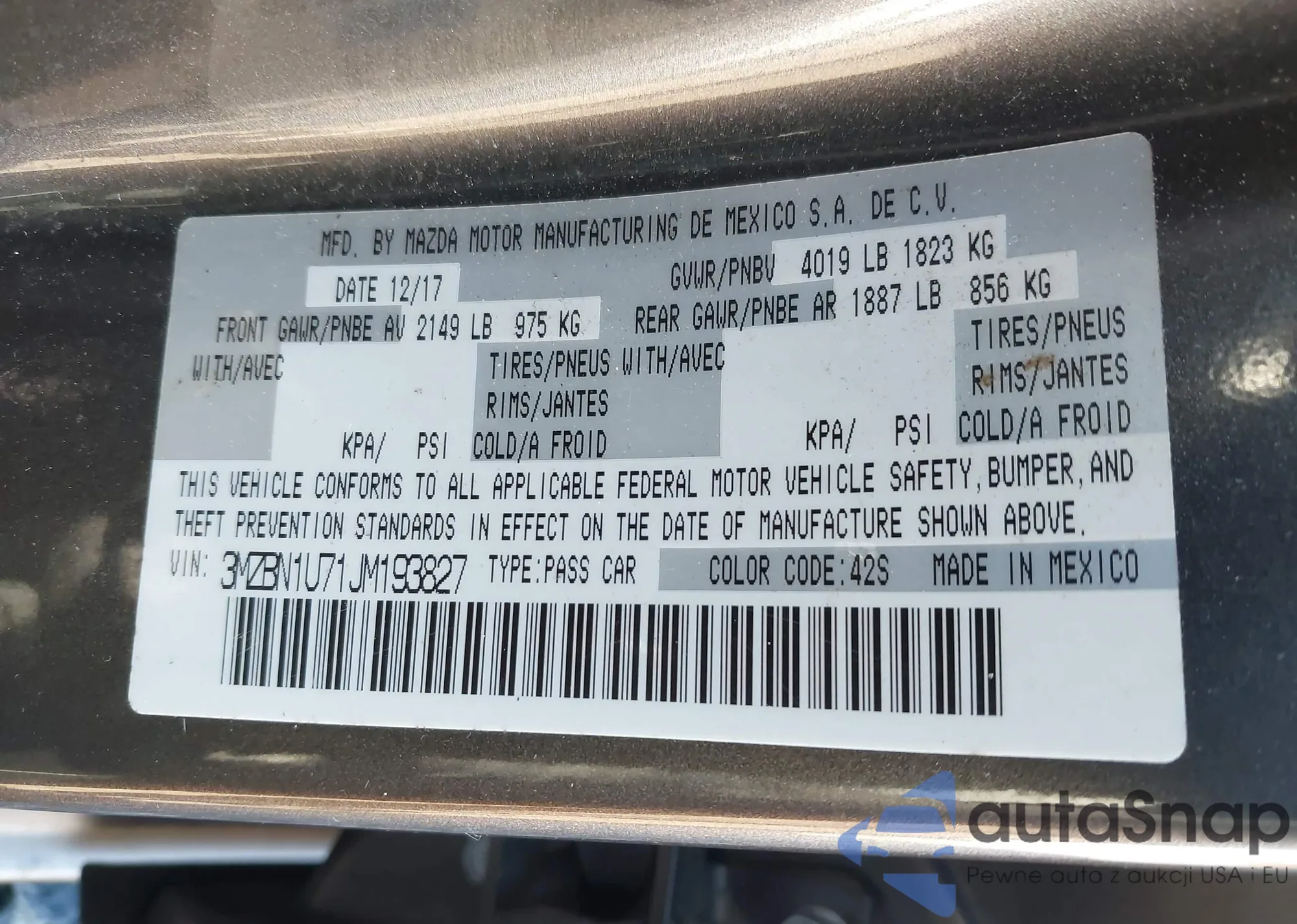 • VIN 3MZBN1U71JM193827