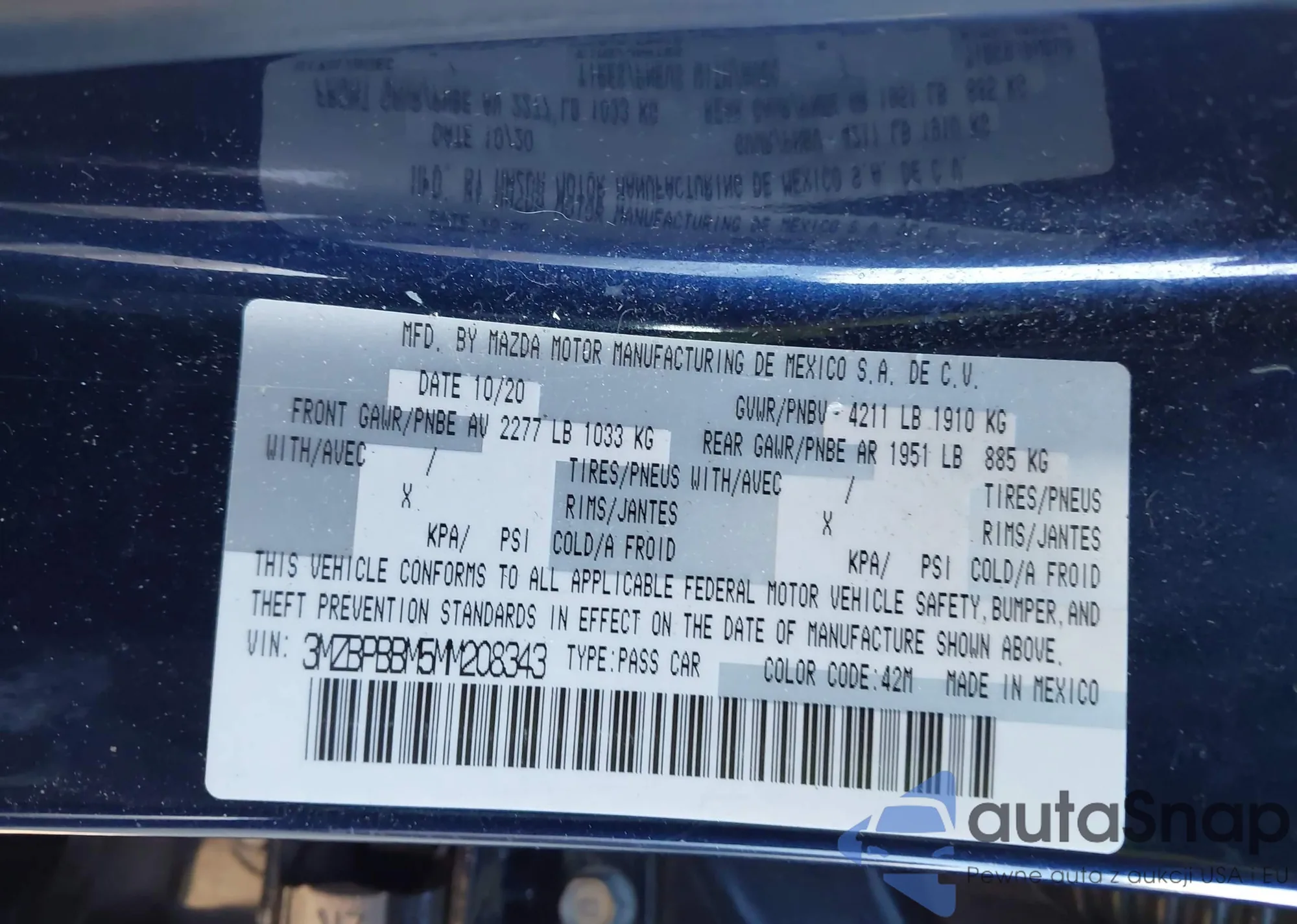 LOT: 44072465 VIN: 3MZBPBBM5MM208343