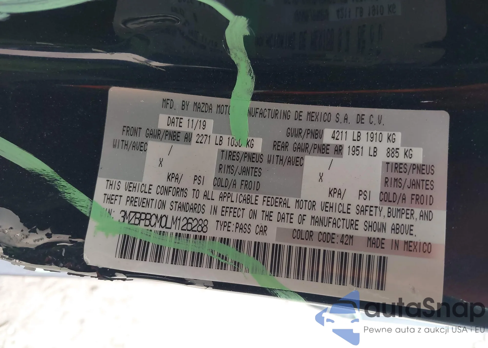 LOT: 44076225 VIN: 3MZBPBCM0LM126288