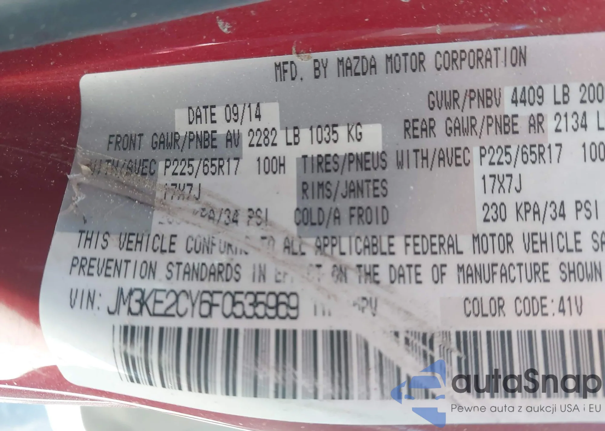 LOT: 44333720 VIN: JM3KE2CY6F0535969