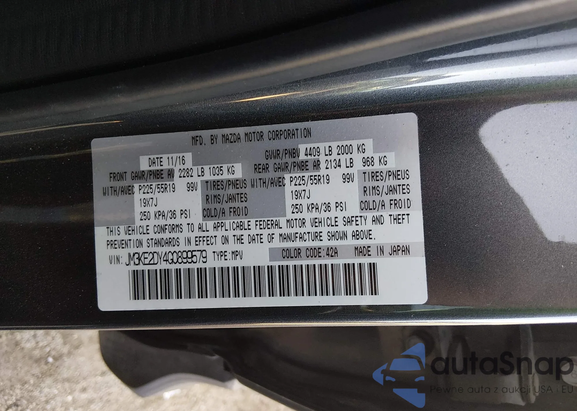 LOT: 44387548 VIN: JM3KE2DY4G0899579