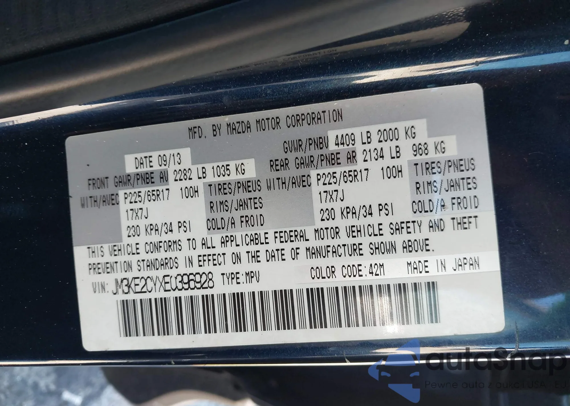 • VIN JM3KE2CYXE0396928