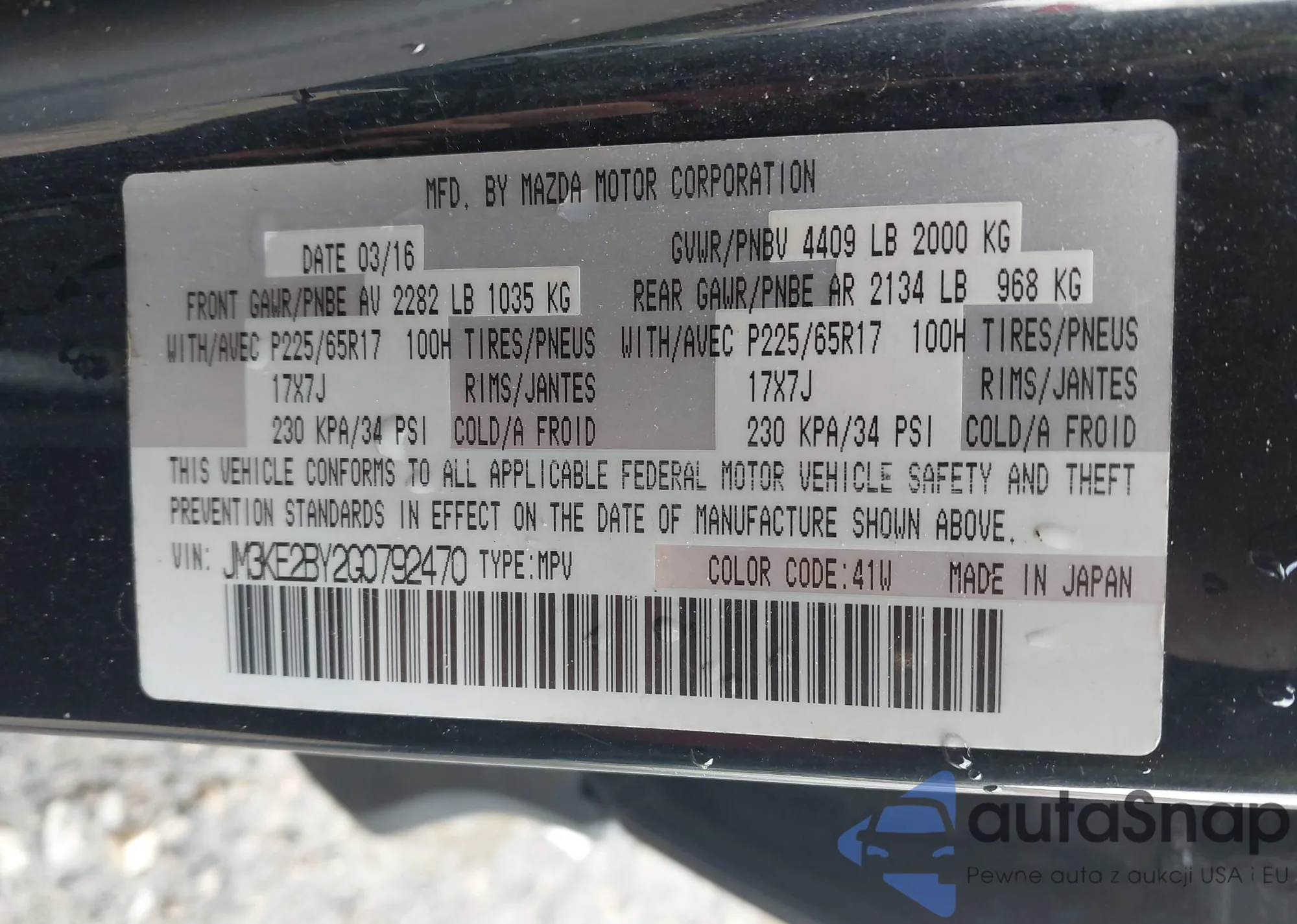 LOT: 44293081 VIN: JM3KE4CY8G0781399