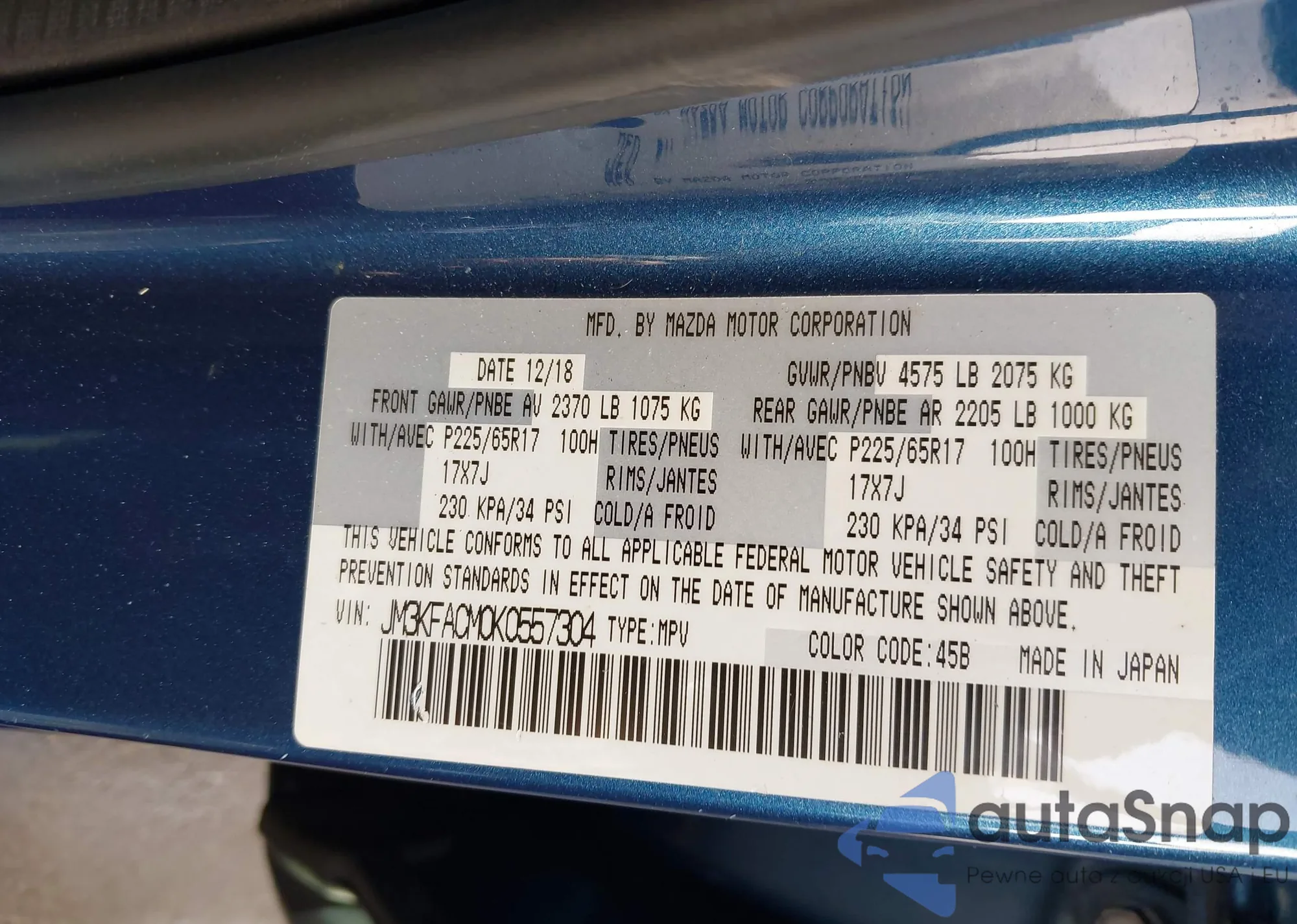 LOT: 43924532 VIN: JM3KFADMXK1631160