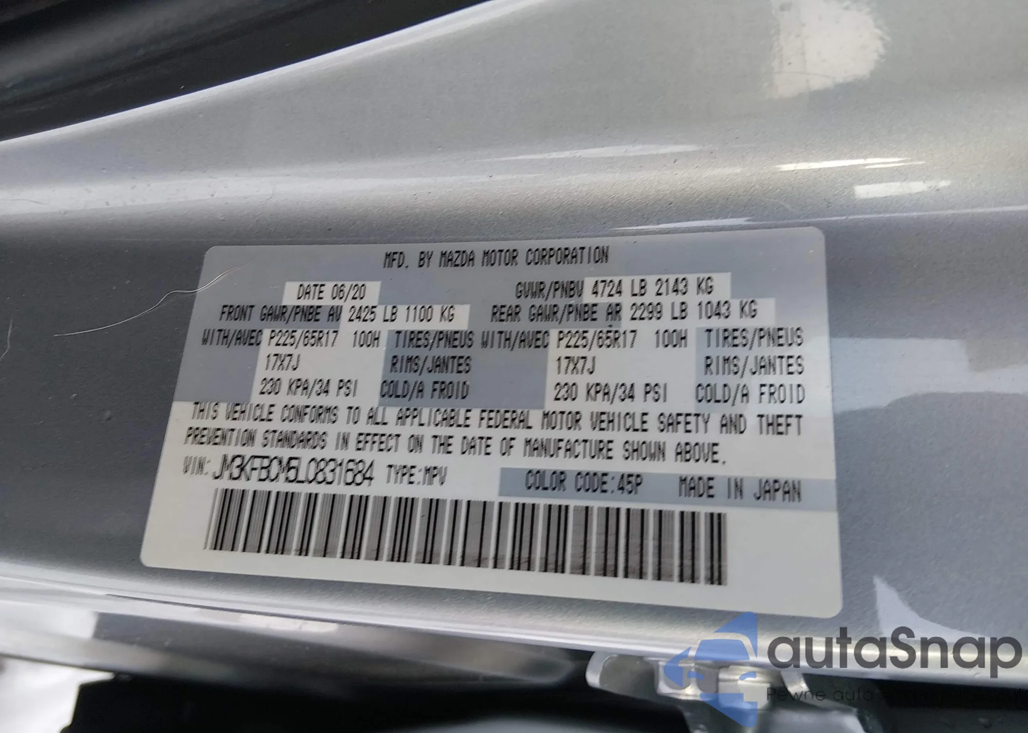 LOT: 44225049 VIN: JM3KFACM9L1858102