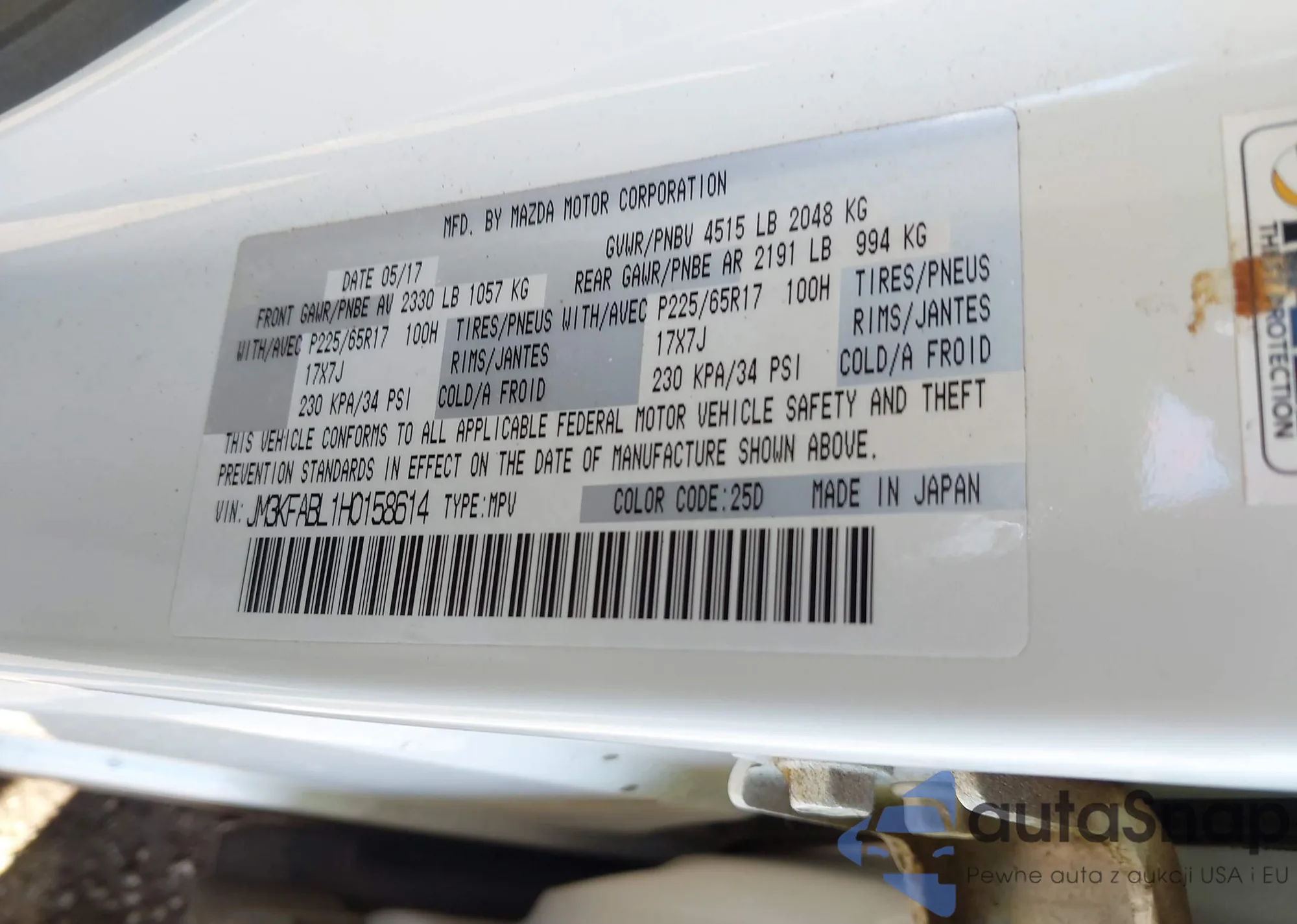 LOT: 44306019 VIN: JM3KFABL1H0158614