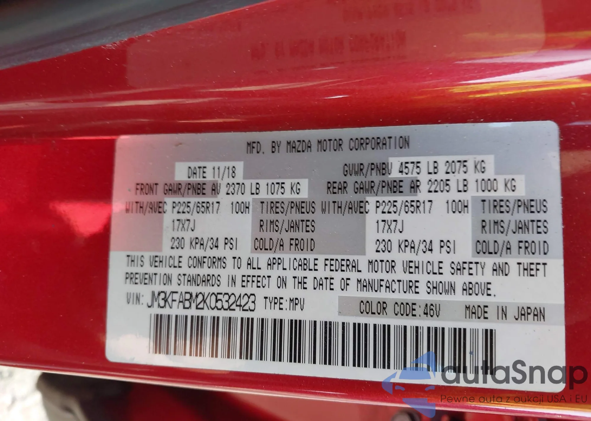 LOT: 44348247 VIN: JM3KFABM2K0532423