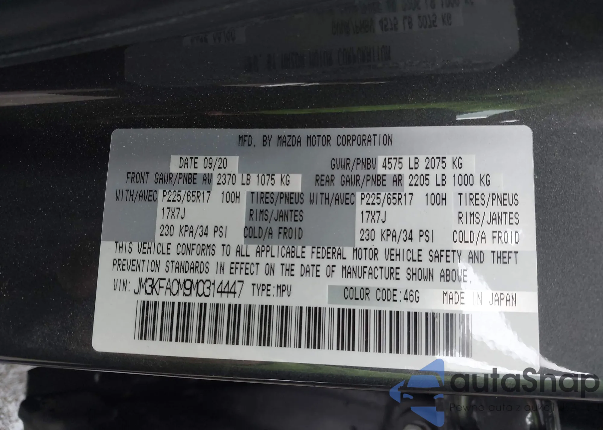 LOT: 44411536 VIN: JM3KFACM9M0314447