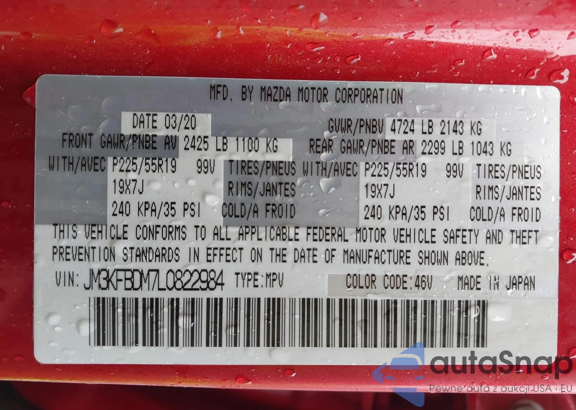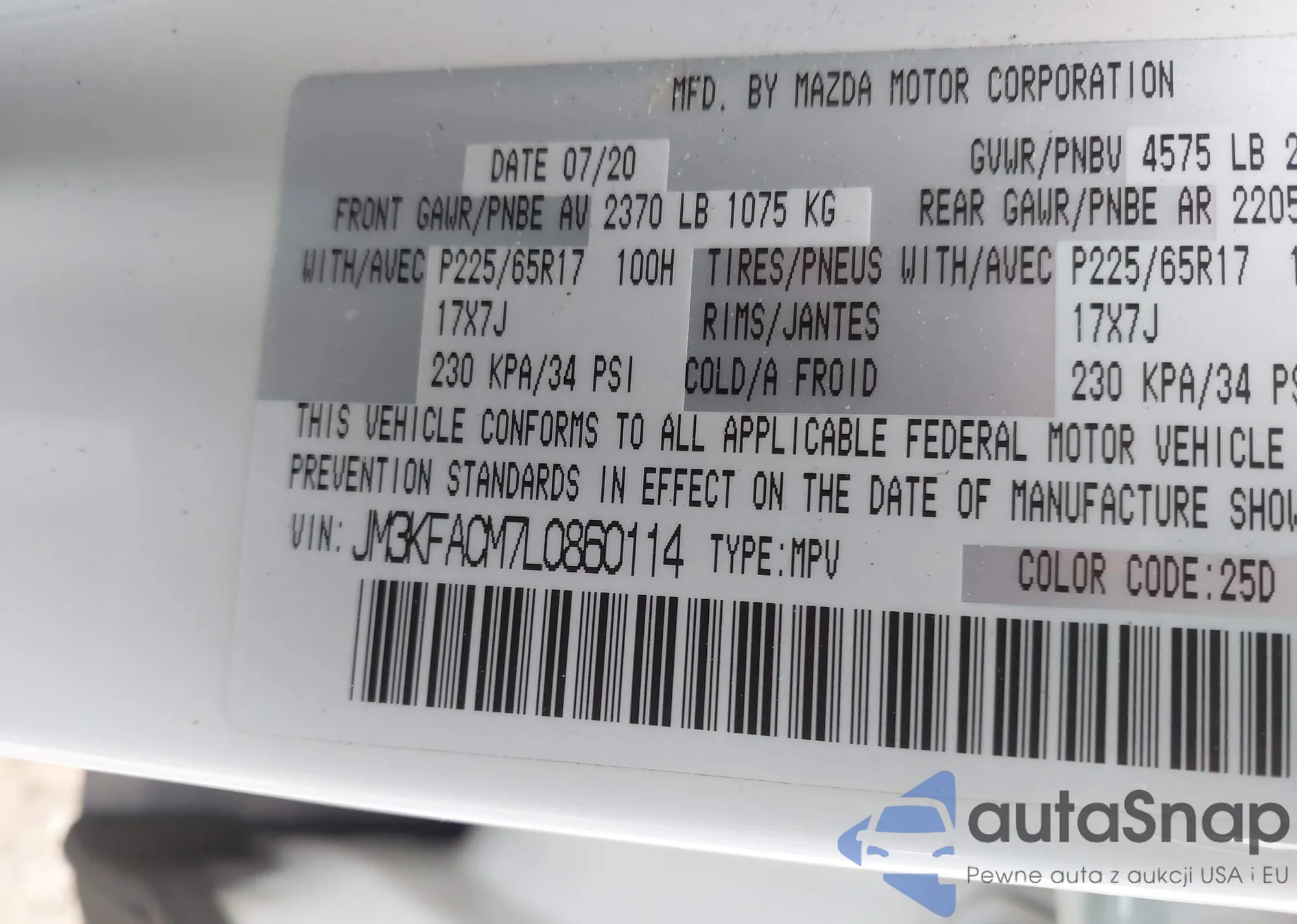 LOT: 44418469 VIN: JM3KFACM7L0860114