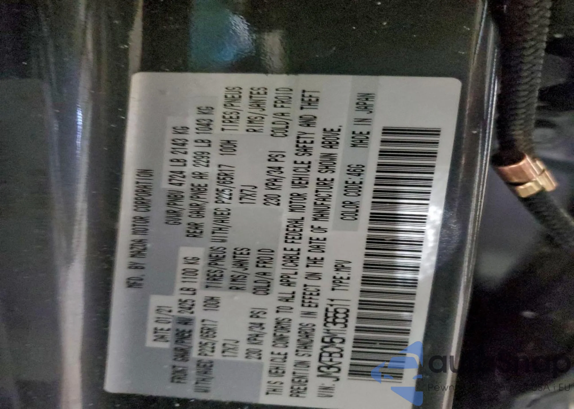 LOT: 99158445 VIN: JM3KFBCM5M1365511
