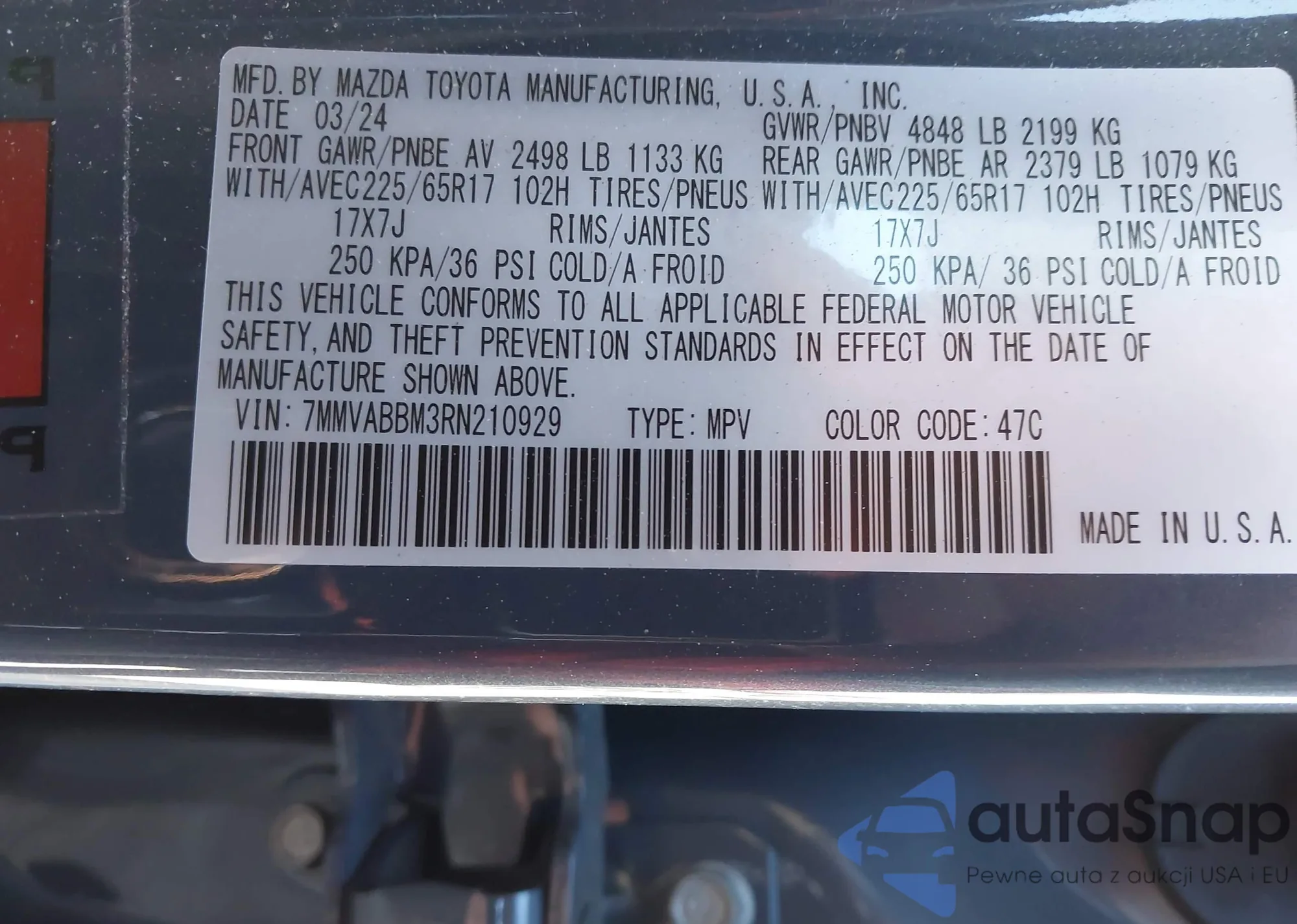 • VIN 7MMVABBM3RN210929