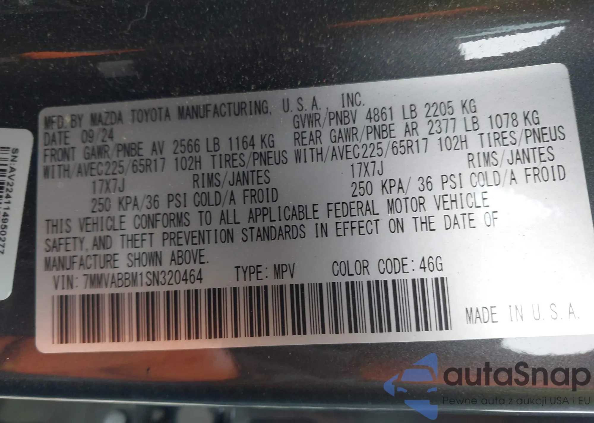• VIN 7MMVABBM1SN320464