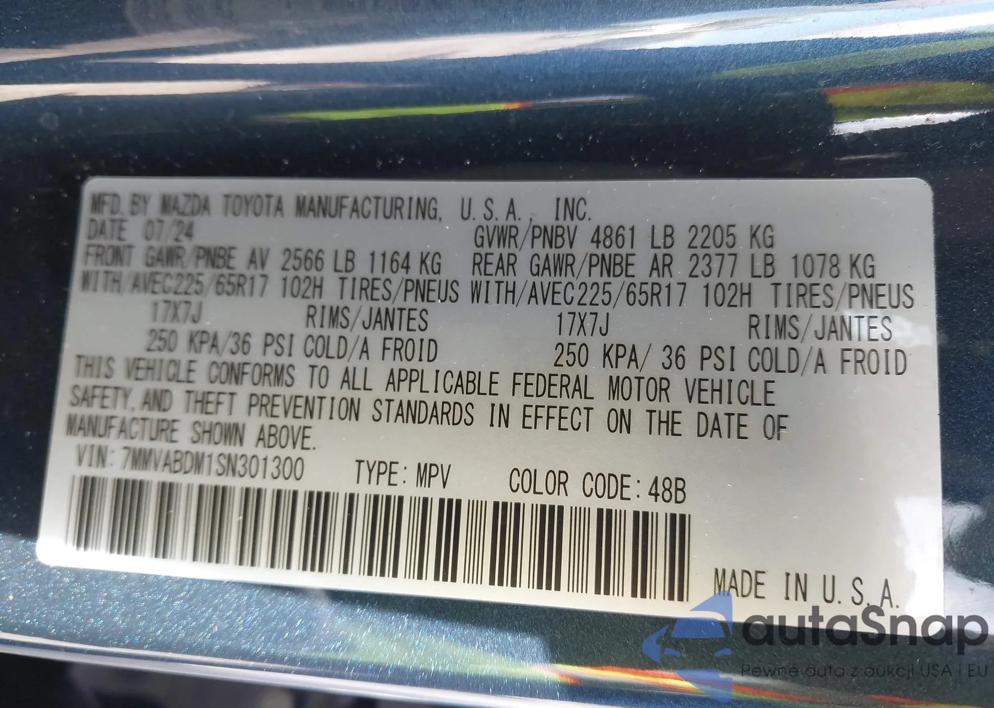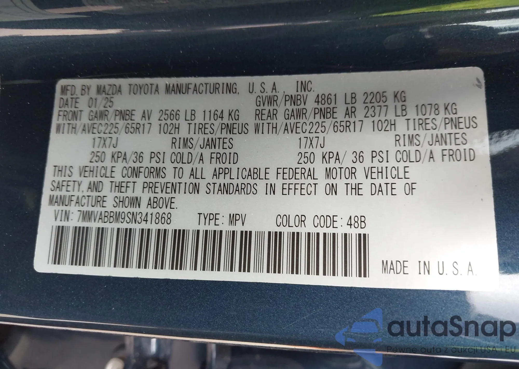 • VIN 7MMVABBM9SN341868