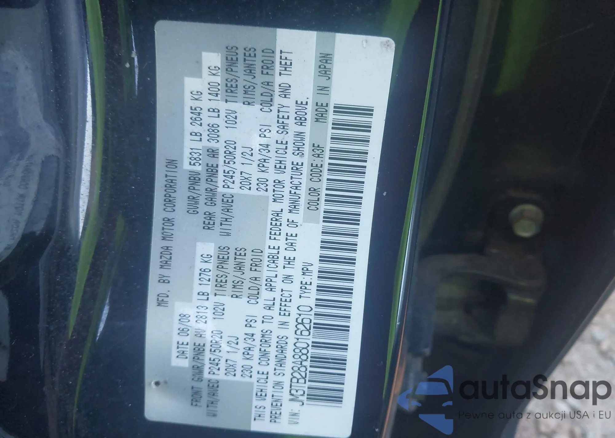 LOT: 44197751 VIN: JM3TB28A880162610