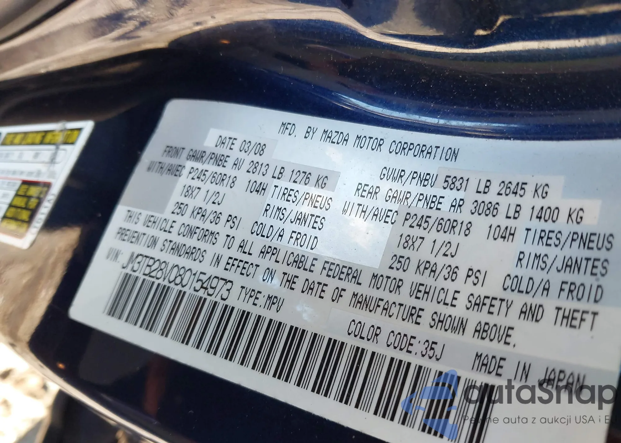 • VIN JM3TB28V080154973