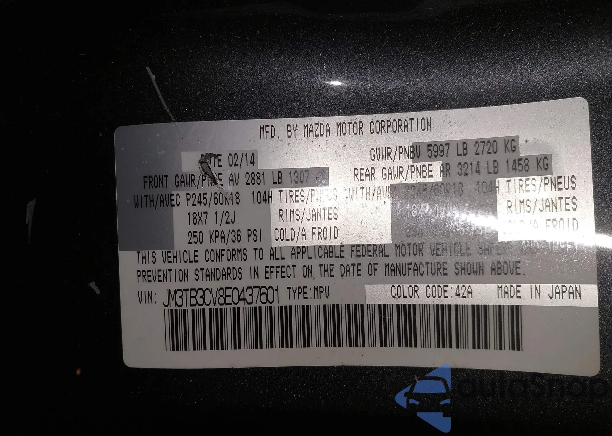 • VIN JM3TB3CV8E0437601