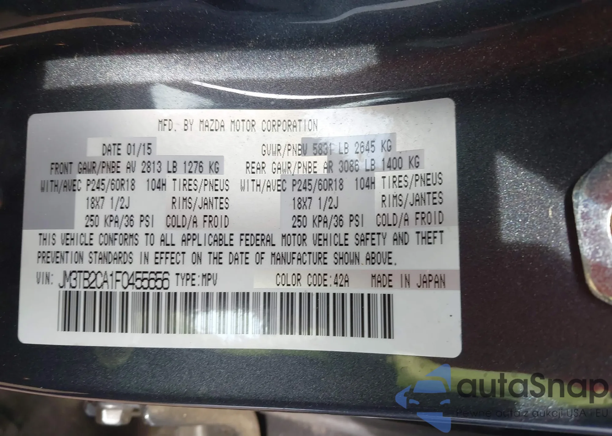• VIN JM3TB2CA1F0455656