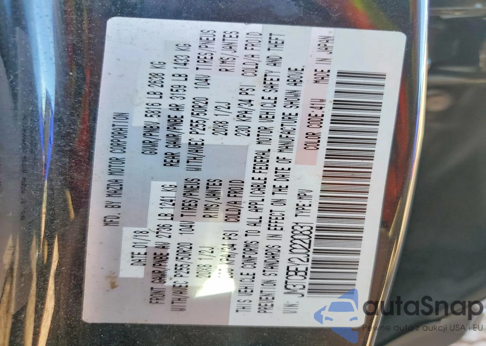 LOT: 75003815 VIN: JM3TCBEY2J0220831