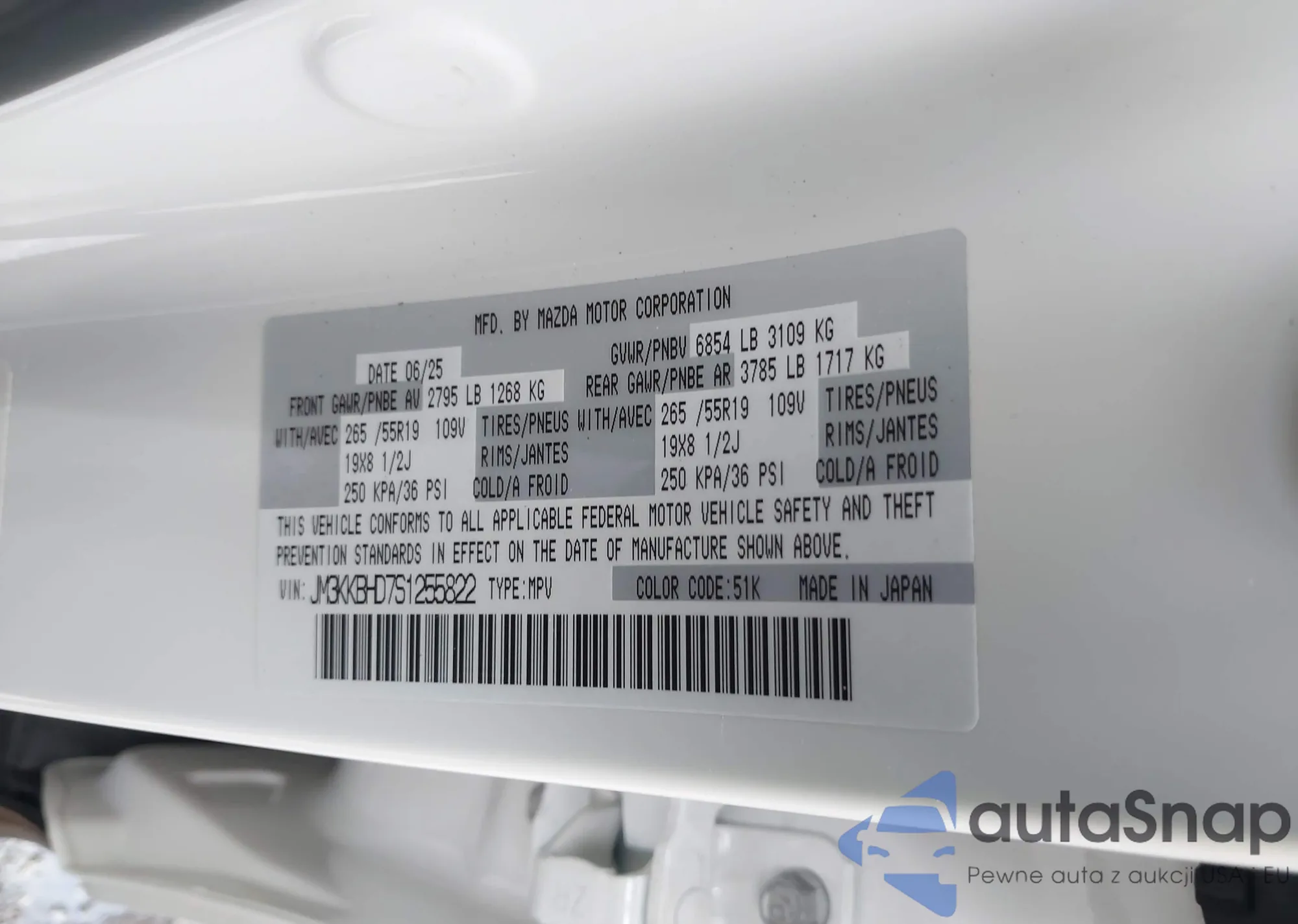 LOT: 44088328 VIN: JM3KKBHD7S1255822
