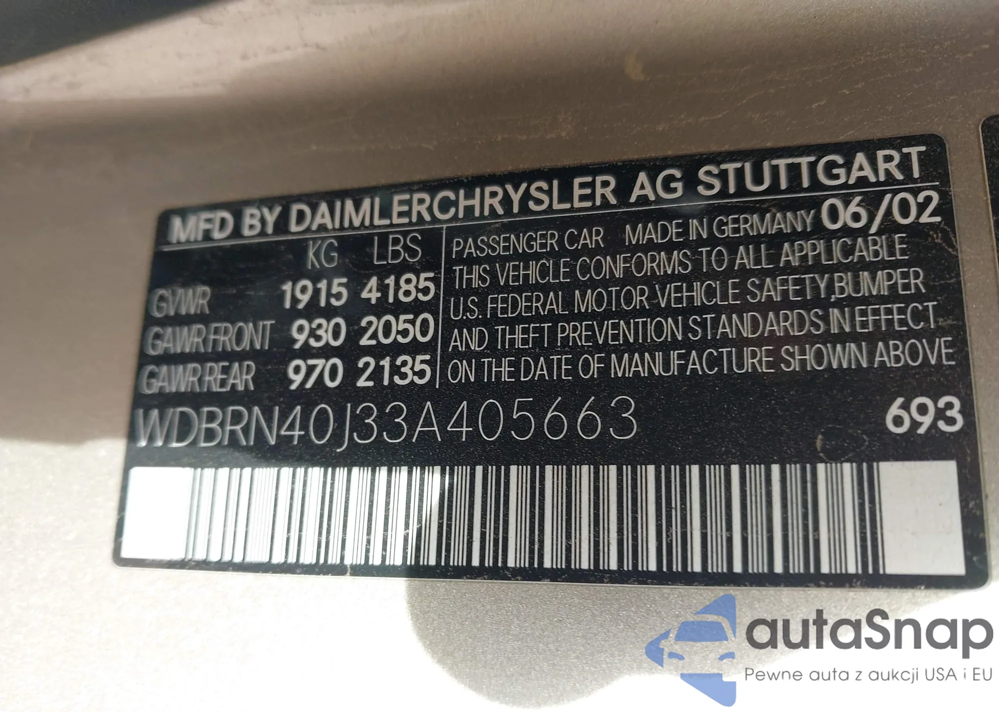 • VIN WDBRN40J33A405663