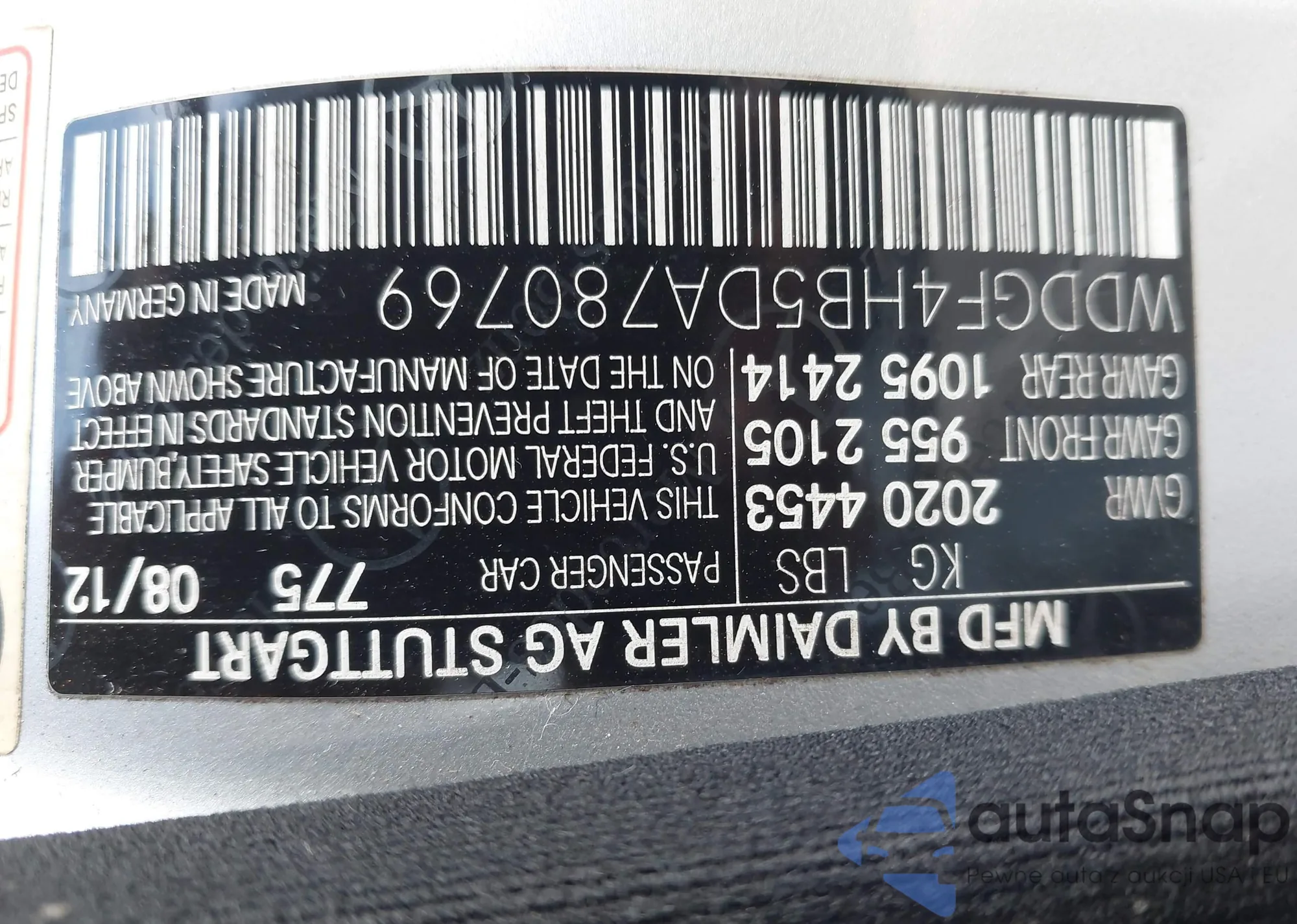 LOT: 42236402 VIN: WDDGF5EB8AR095480