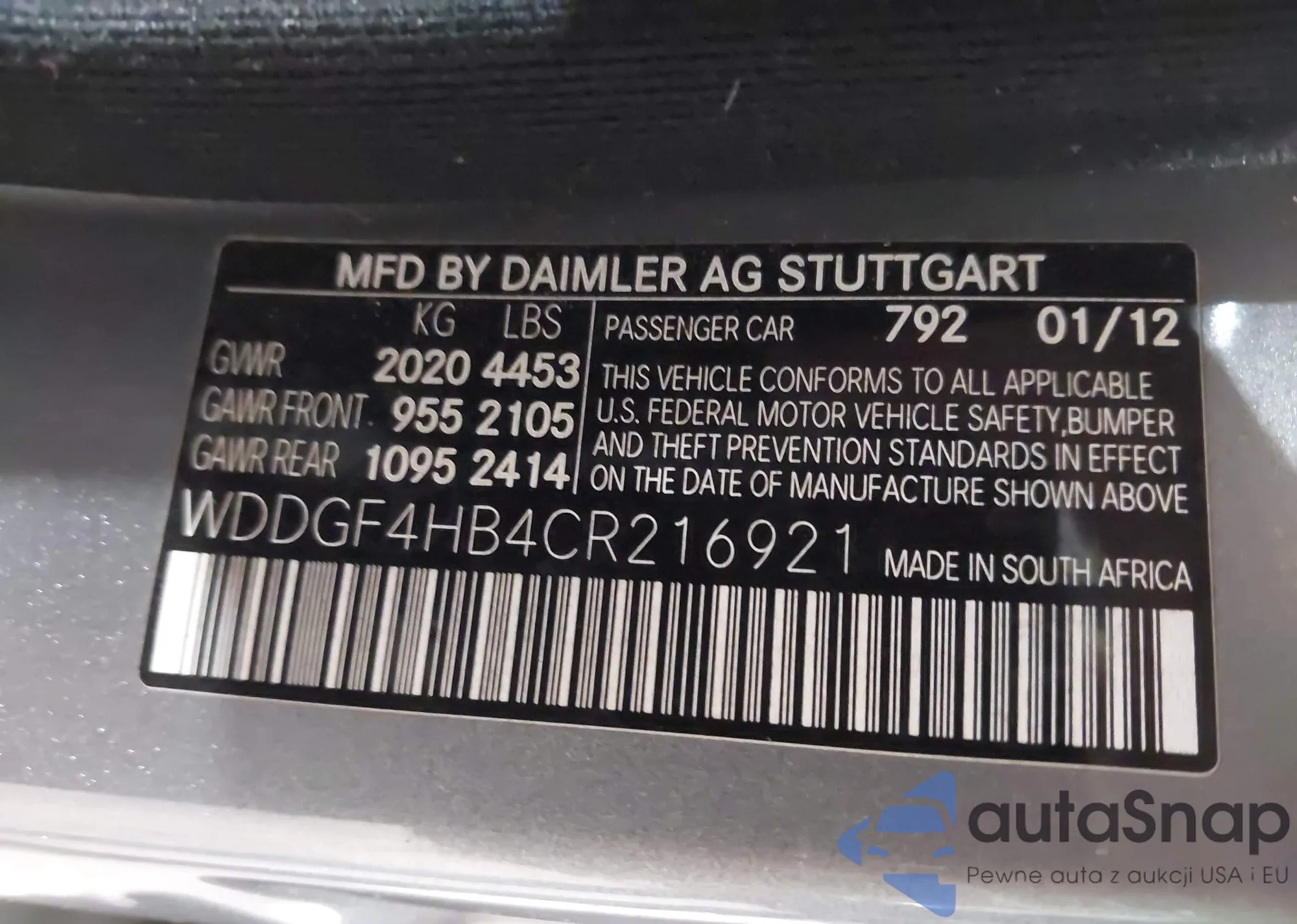 LOT: 43795547 VIN: WDDGF4HB4CR216921