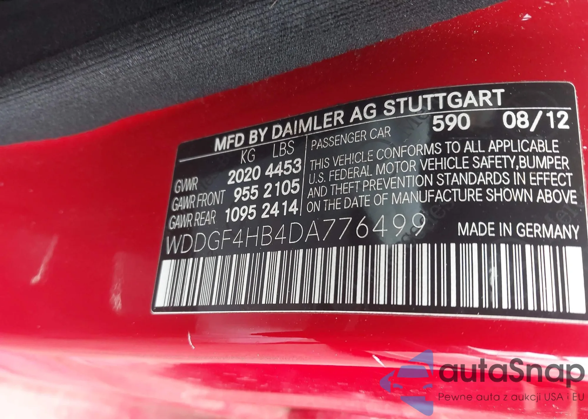 LOT: 43897244 VIN: WDDGF4HB4DA776499