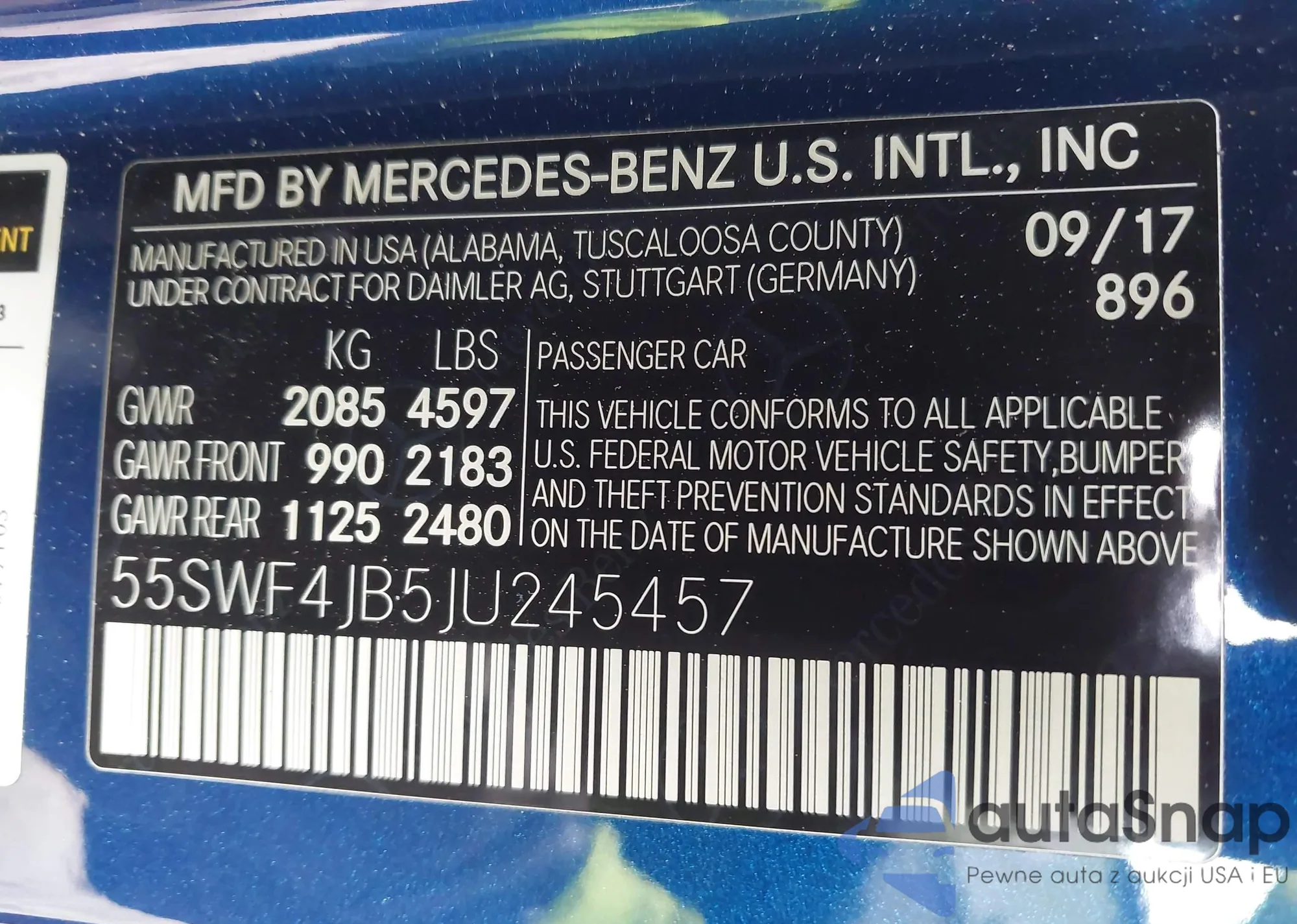 • VIN 55SWF4JB5JU245457