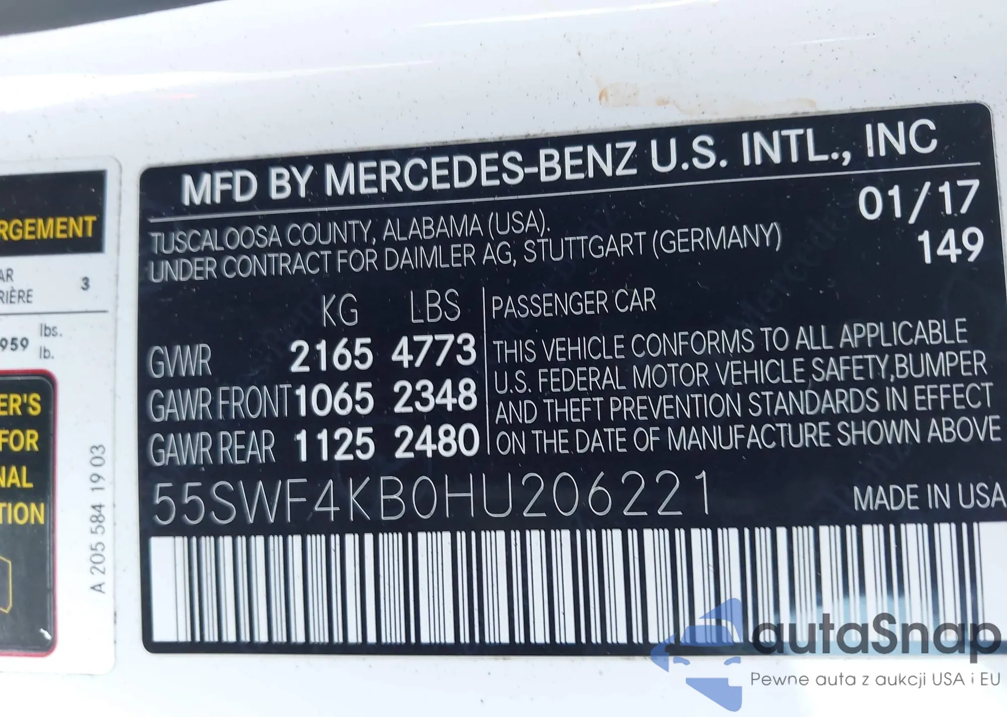 • VIN 55SWF4KB0HU206221
