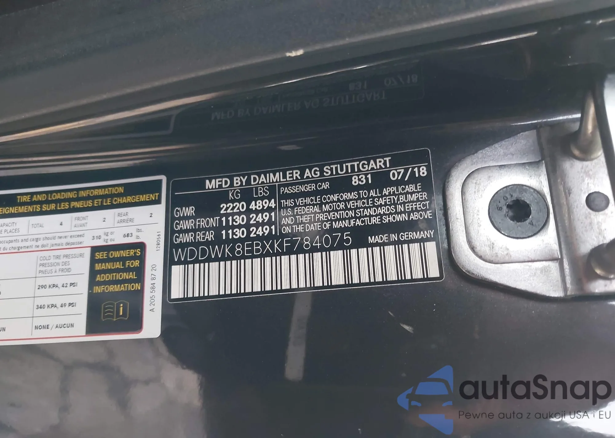 • VIN WDDWK8EBXKF784075