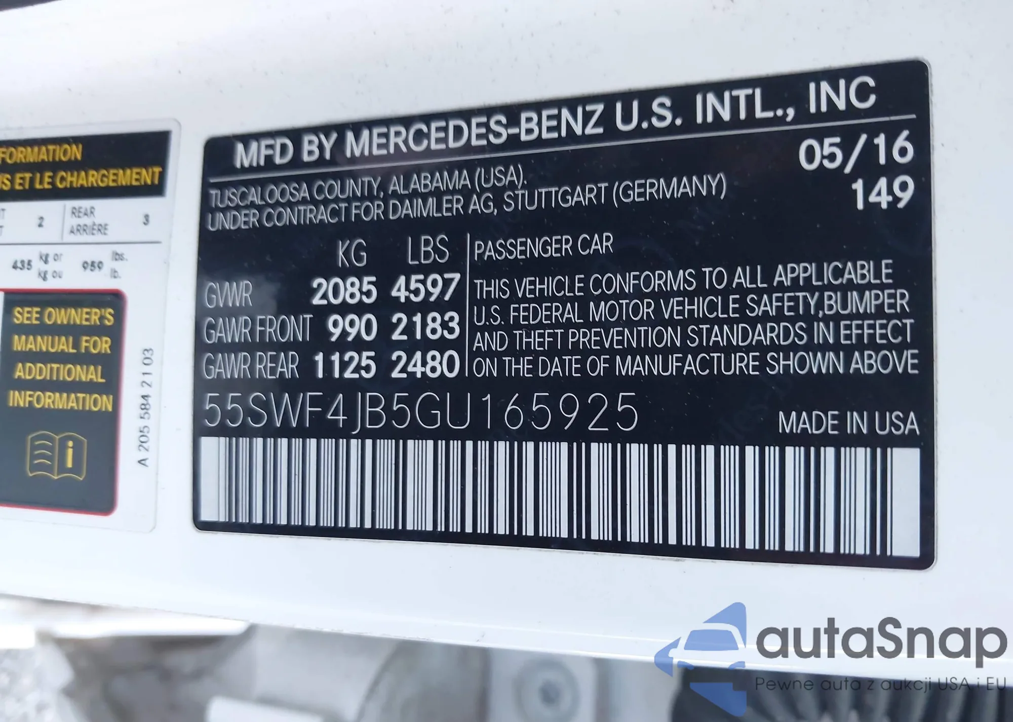 • VIN 55SWF4JB5GU165925