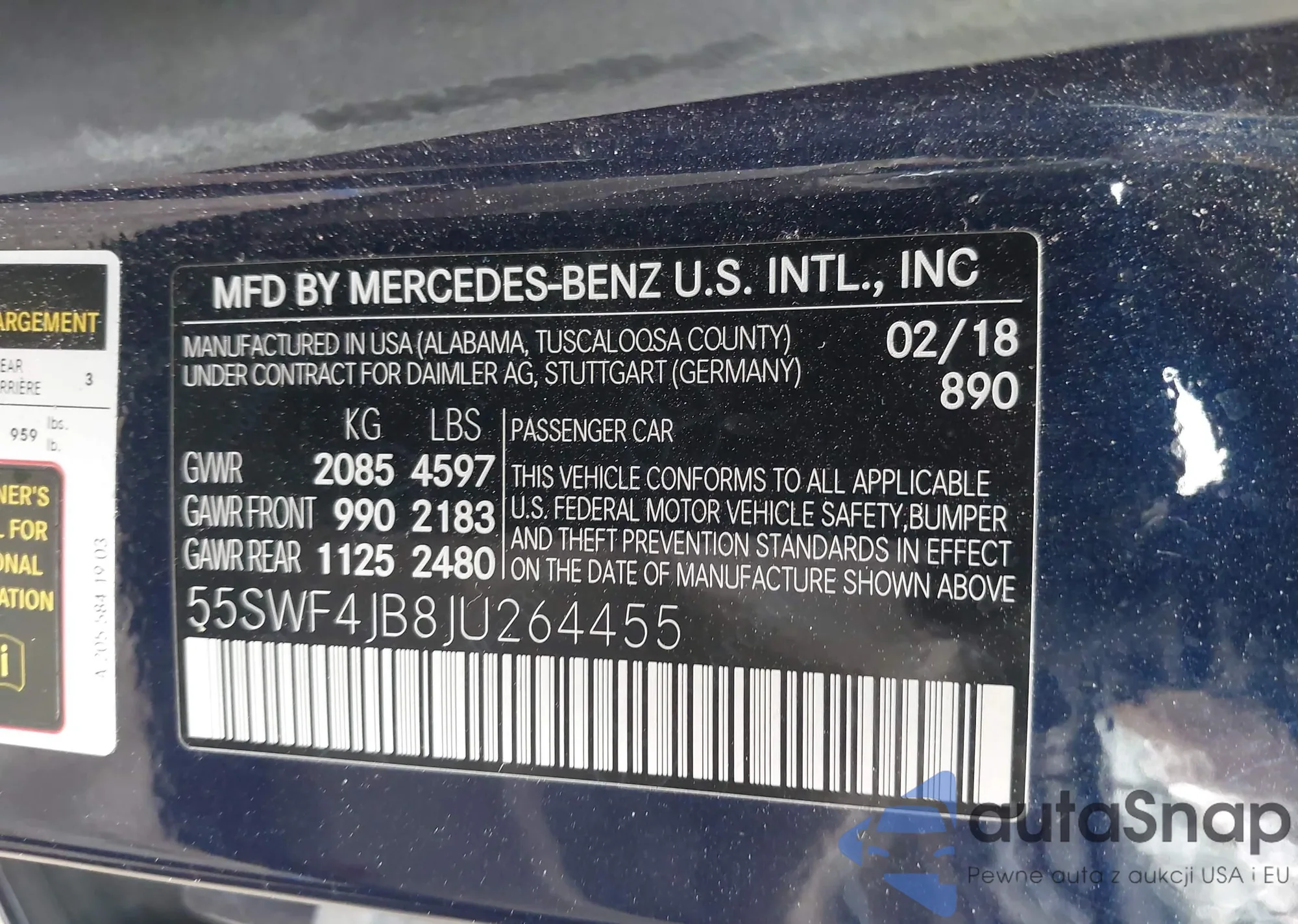 • VIN 55SWF4JB8JU264455